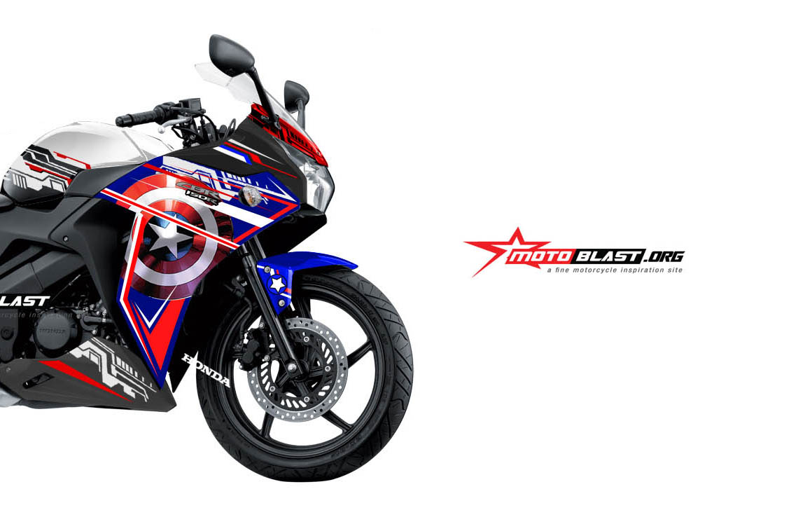 tema yang motoblast angkat adalah tema captain america, walaupun sudah termasuk motor lawas, tapi cbr150r cbu thailand masih sangat bagus untuk dilihat, sangat kereeen..apalagi dengan decal stiker captain america ini, sangat cocok untuk warna tricolor atau rwb honda cbr150r cbu thailand