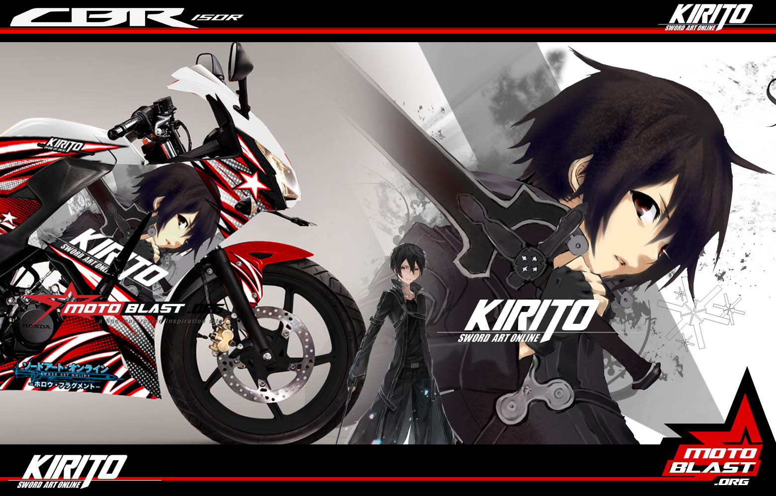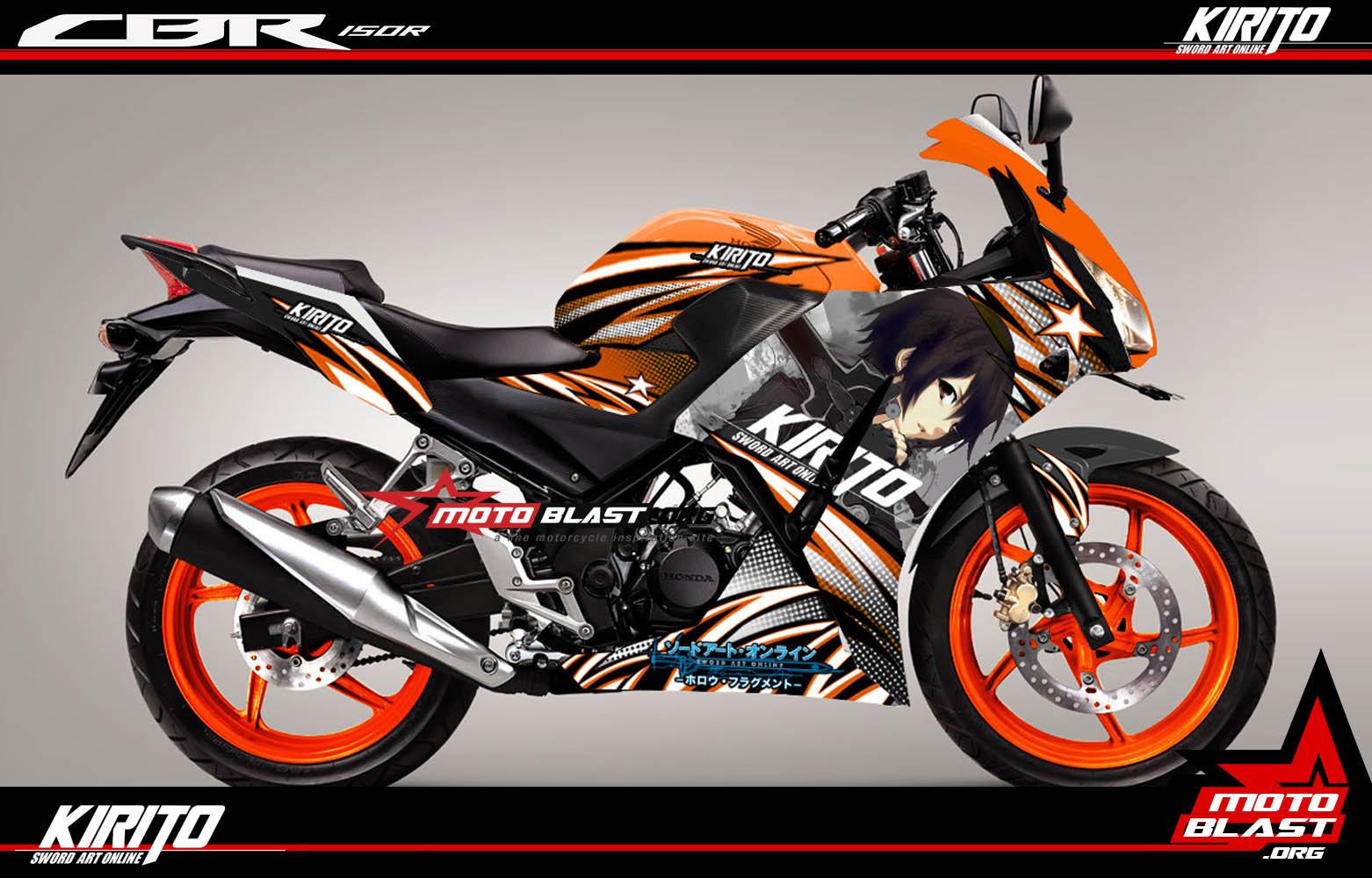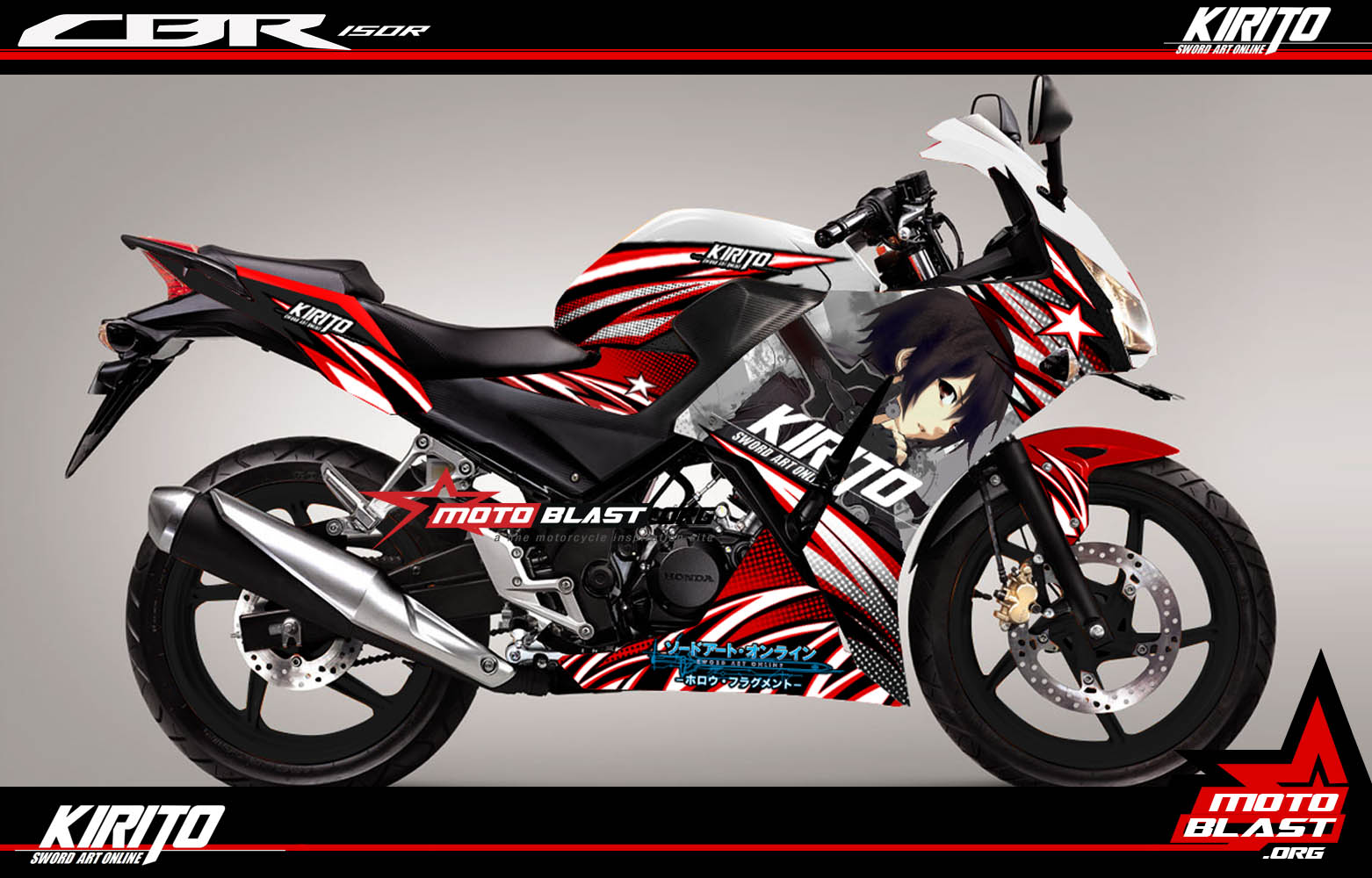 motoblast.org – Modifikasi striping honda cbr150r k45 old tema Film anime kesukaan banyak orang, yang mungkin bagi saya baru pertama kali tahu, yaitu SAO atau Sword art Online dengan salah satu karakterk nya bernama Kirito dan satu lagi cewek bernama Asuna