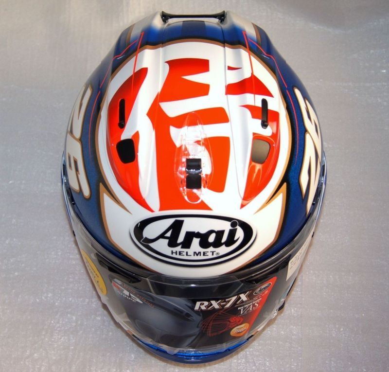 Naah untuk itu akan di miripkan ke body honda new cbr250rr yaitu mulai bertuliskan jepang yang melingkar itu di letakkan di fairing samping kiri kanan dan gambar little samurai dengan tulisa Dani dan seorang samurai yang memakai topi bertuliskan nomor 26 nomer asli dari dani pedrosa.. dan menurut informasi ini adalah helm arai very motegi 2015. dan kombinasi warna nya adalah biru, hitam putih dan merah.. namun karena di letakkan di body motor cbr250rr warna merah, maka yang di pakai adalah hitam dan putih, birunya tidak di masukkan