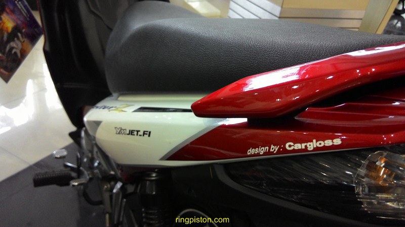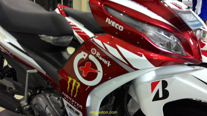 seperti di lansir oleh ringpiston disini, stripingnya emang sederhana, namun di tempeli logo (x) khas jorge lorenzo dan juga nomor #99 yang juga ciri khas banget dari jorge lorenzo..membuat klop dan semakin kuat identitas jorge lorenzo terhadap motor ini.