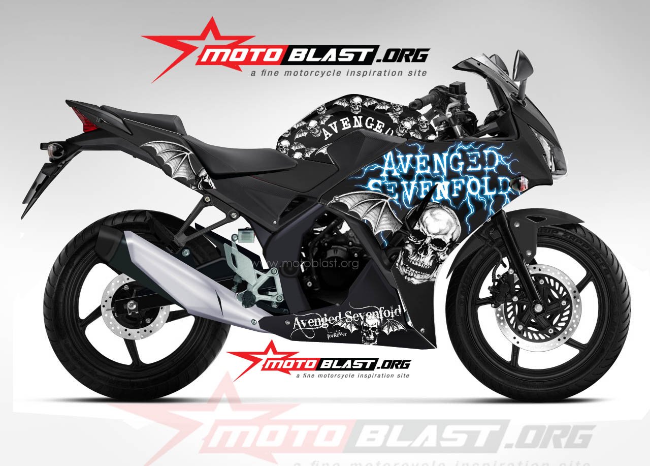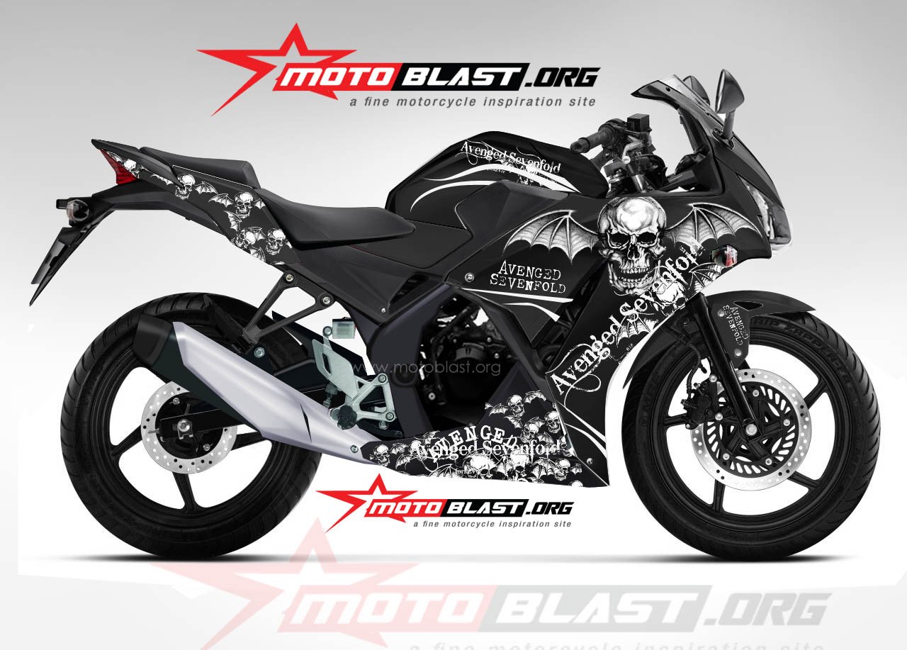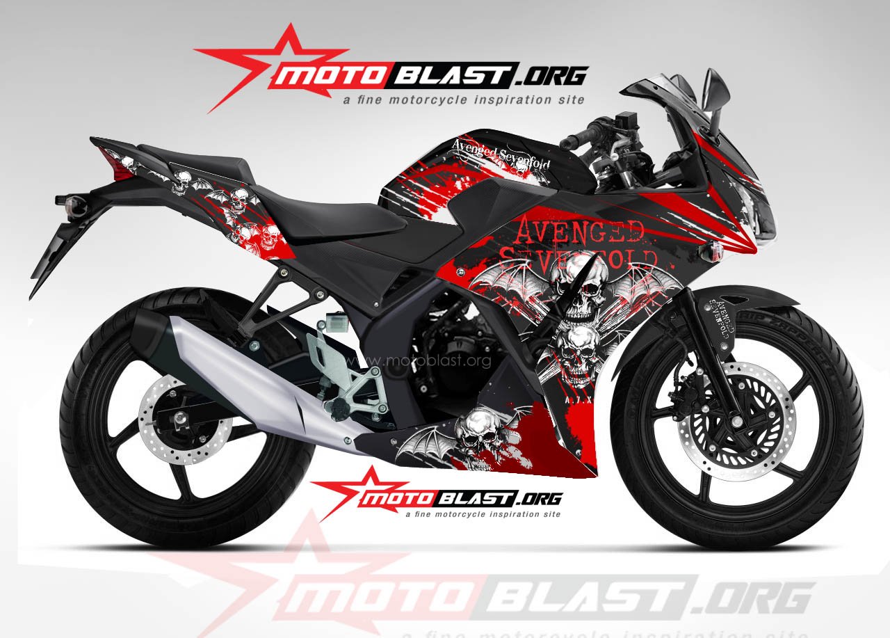 Halo mas dab..kali ini motoblast akan buatin modif striping untuk honda cbr150r lokal dengan tema Horror ngeri ngeri seddaap..Avenged Sevenfold yang notabene gambarnya angker semua nih…tengkorak mulu..hehe