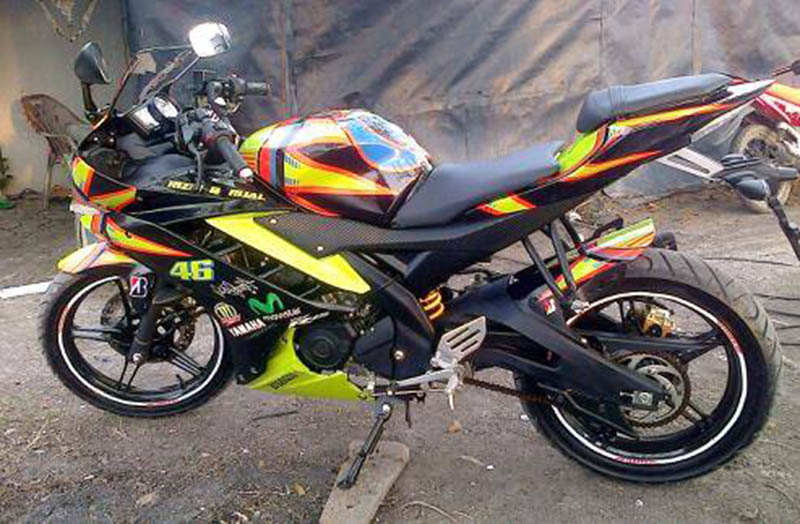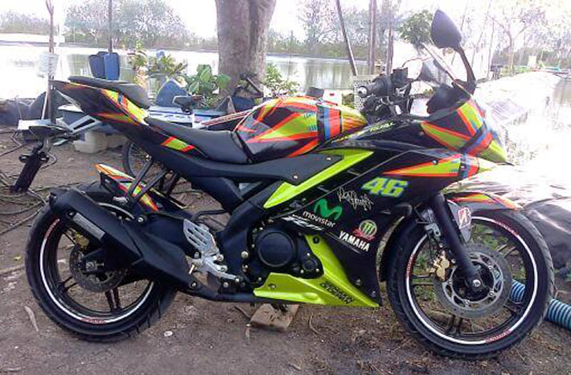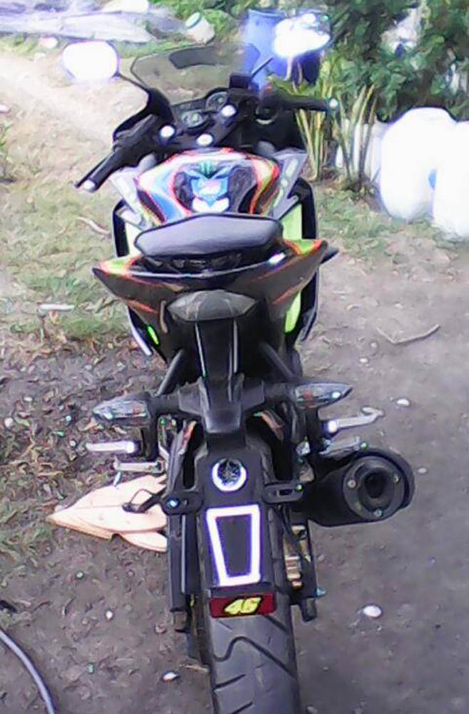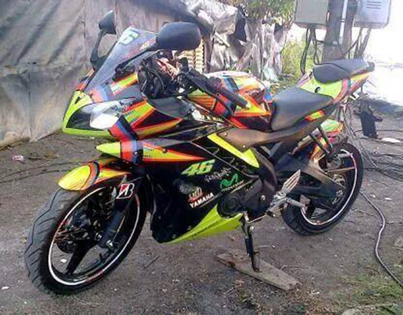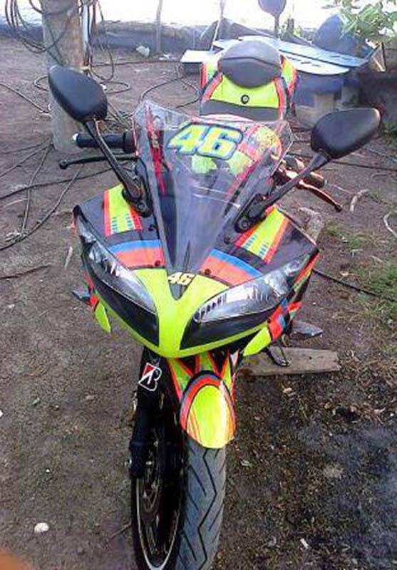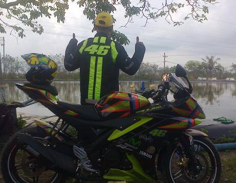 Halo mas dab…adalah masbro Dwi Cahyo Utomo pemilik yamaha R15 asal Palembang berwarna hitamm yang berhasil menyulap motornya menjadi seprti yang pernah di pamerin YIMM dengan konsep sun moon special edition valentino rossi..