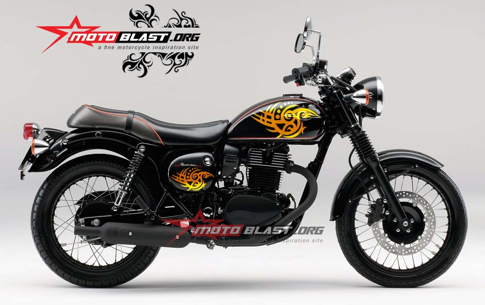 Halo mas dab..kali ini motoblast akan buatin modif striping classic series, yaitu modif striping untuk kawasaki estrella 250 warna hitam dengan laburan tribal klasik warna emas..monggo di intip