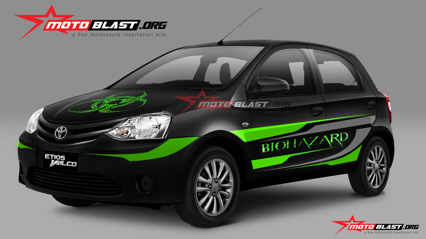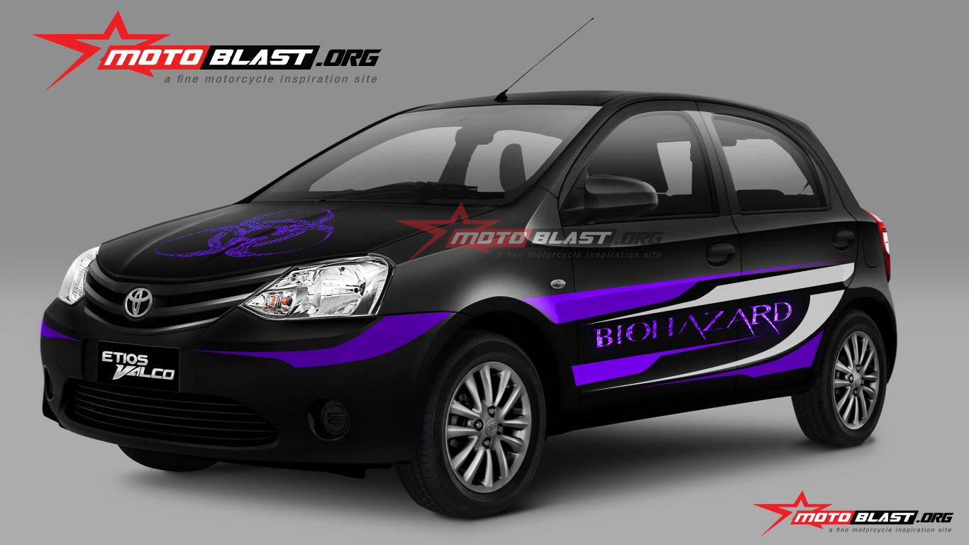 Halo mas dab.. kali ini motoblast akan buatin modif striping untuk car series yaitu mobil Toyota Etios Valco warna hitam dengan tema biohazard. penasaran? monggo di intip