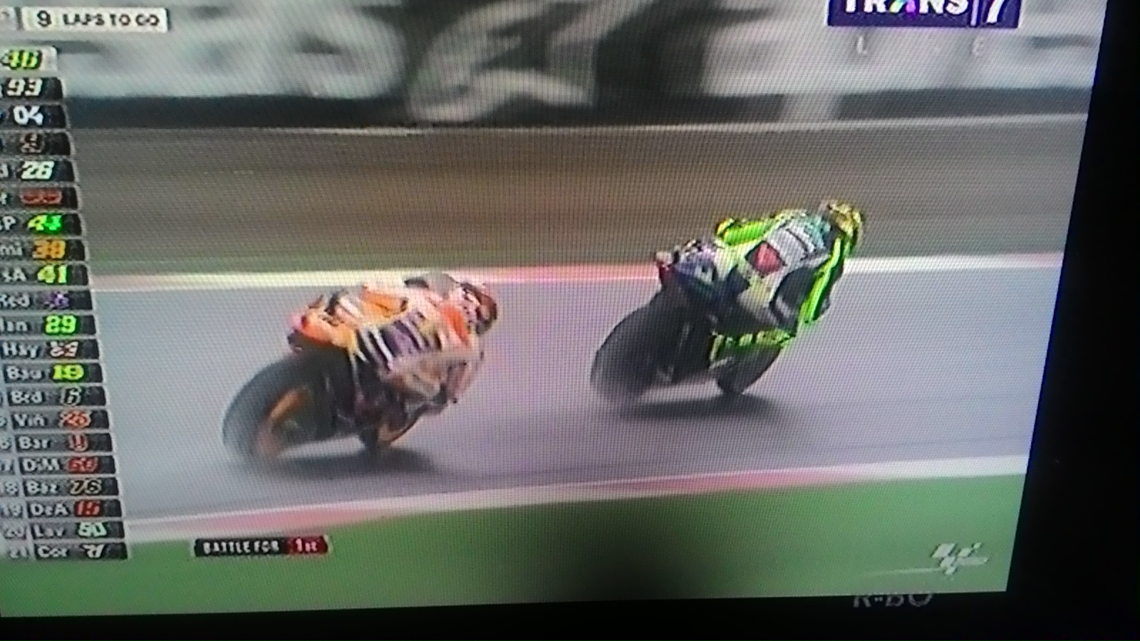 dengan posisi di pertama adalah Marques, kedua Jorge Lorenzo, Dani pedrosa posisi 3,sedangkan V Rossi di posisi ke empat…di awal race, jorge lorenzo langsung memimpin di depan dengan di ikuti oleh marques dan valentino rossi…