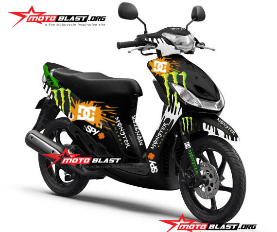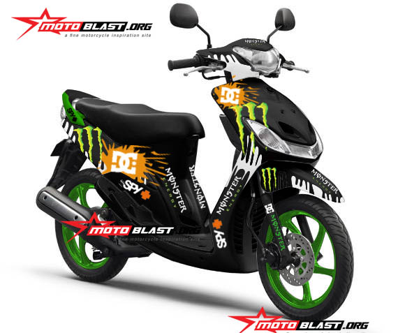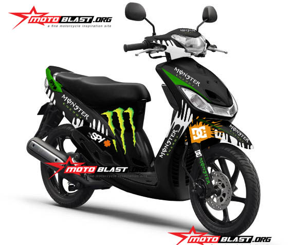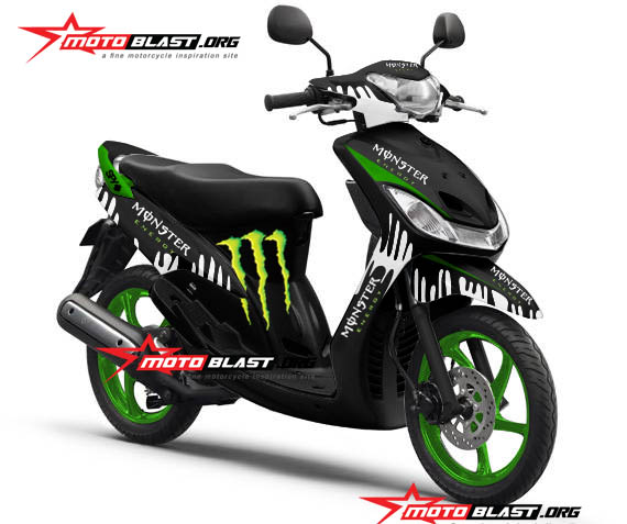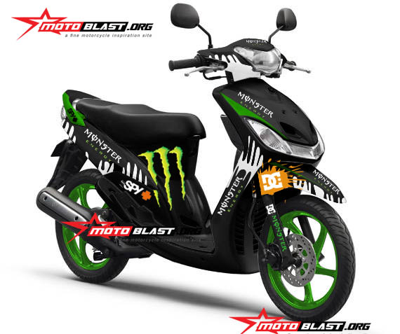 Halo mas dab…selamat malam..kali ini motoblast akan buatin modif striping untuk yamaha Mio sporty warna hitam dengan tema monster energy , monggo di intip