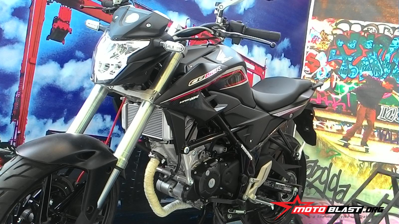 bagi mas dab yang memiliki all new honda cb150r, mungkin berikut ini bisa di jadikan acuan modif yang sebenernya sebagian besar orang menginginkanya, termasuk motoblast sendiri, kalo puya motor 150cc pasti ini yang paling saya lakukan dulu, sektor kaki kaki hal wajib agar terlihat gagah.motoblast menyebutnya modif simple exclusive namun berbobot, kenapa? karena modif bagian kaki kaki membutuhkan dana yang tidak sedikit..seperti all new cb150r berikut ini sudah di modif mantap, suspensi depan pun udah di lengserin dan di ganti dengan Up Side Down, kemudian ukuran ban depan jadi 110 dan belakang menjadi 150, karena itu ukuran maksimal untuk velg standar ya, kalo lebih lebar lagi musti ganti arm, velg dll.