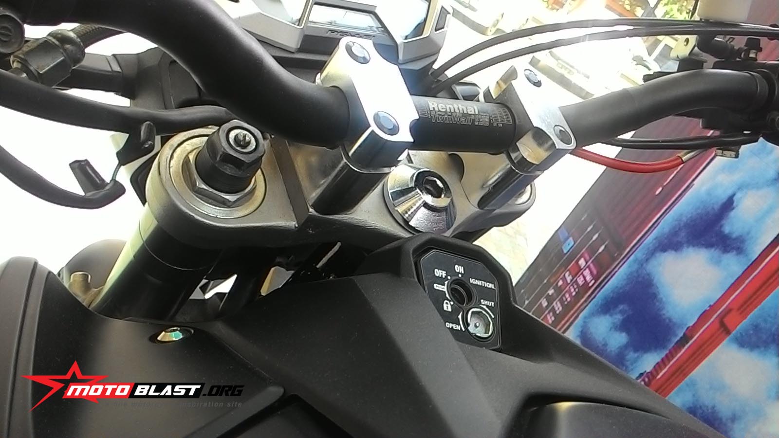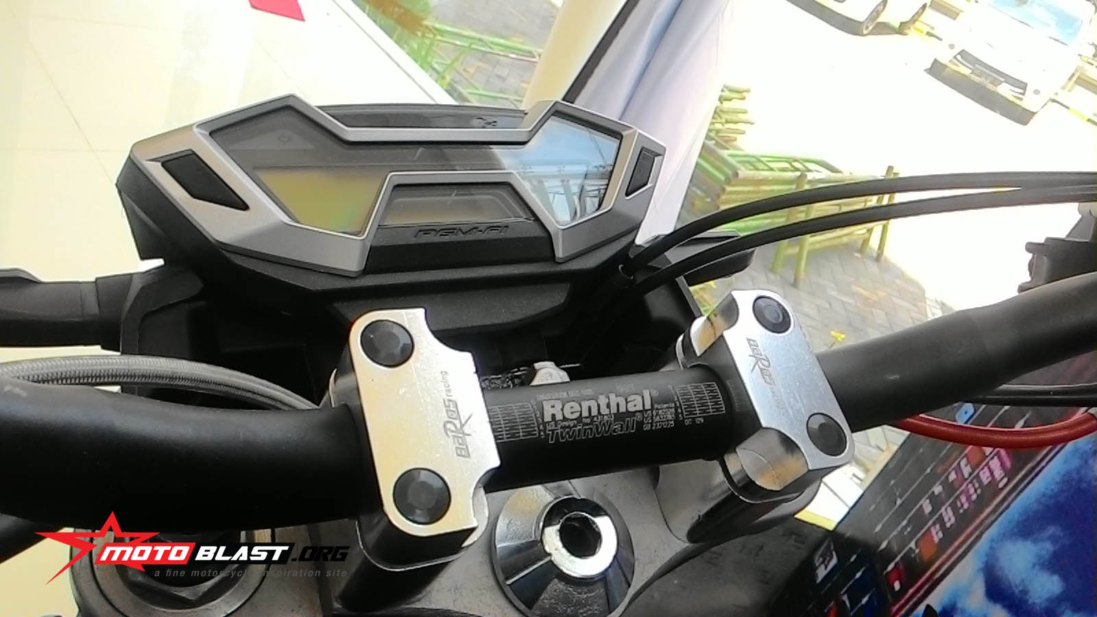 karena berbasis naked, all new cb150r ini mengubah stang renthal, alhasil stang lebih baplang, lebih enak handling dan gak bikin pegel, enak pake touring, nah joss kan..selain itu spion di ganti variasi model lancip..