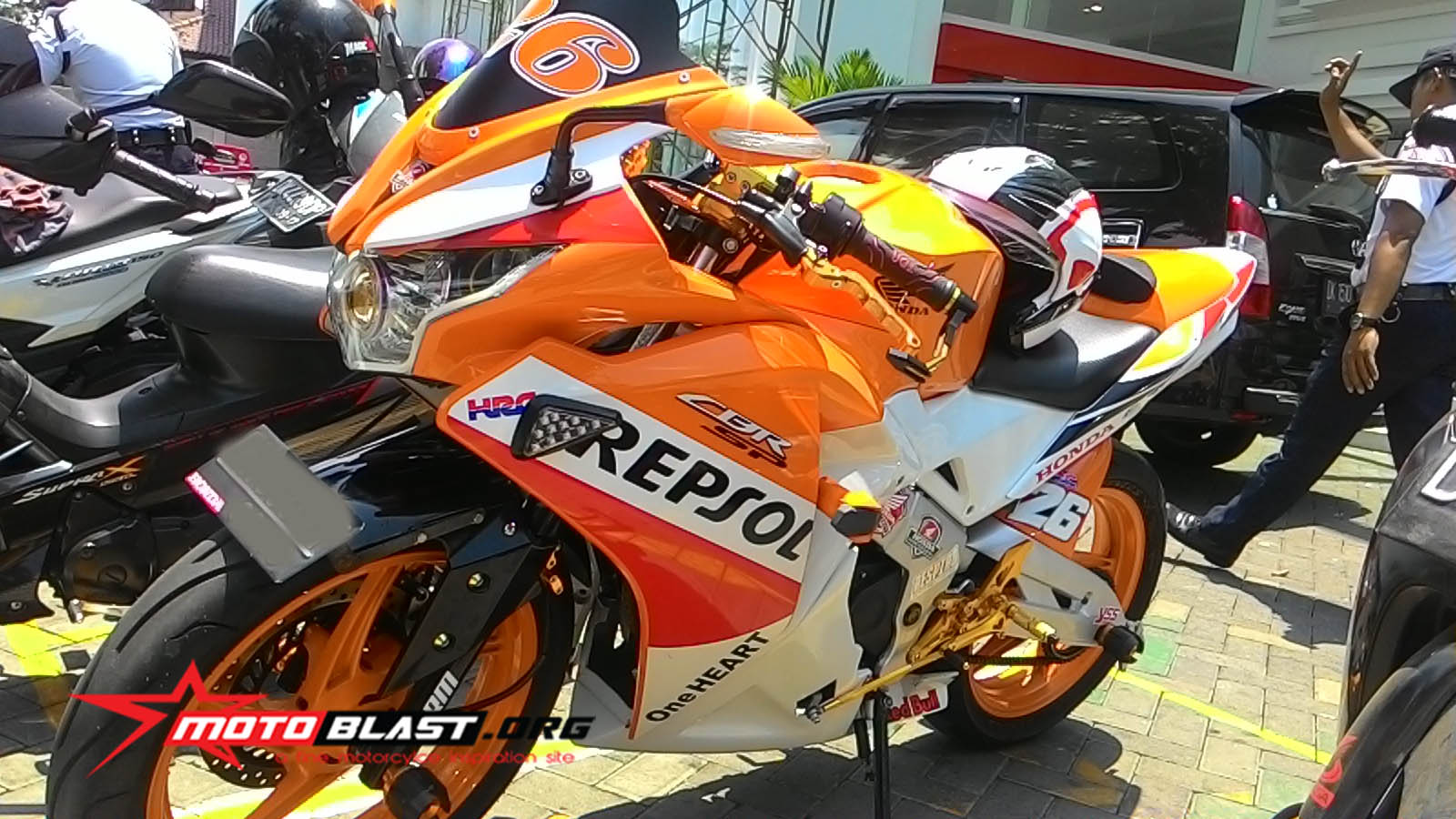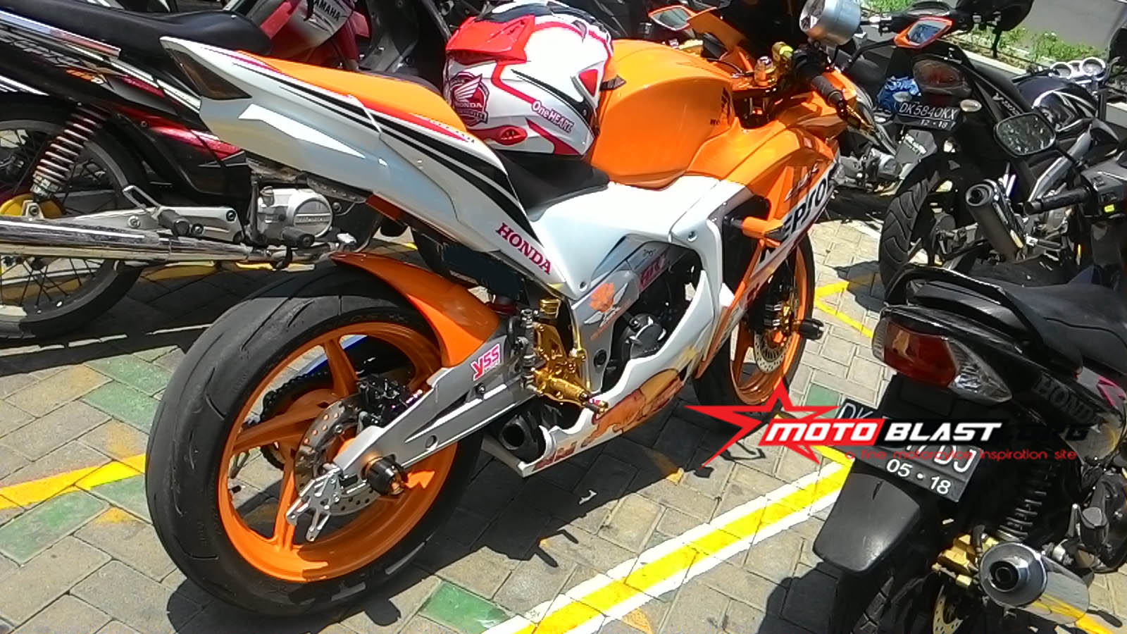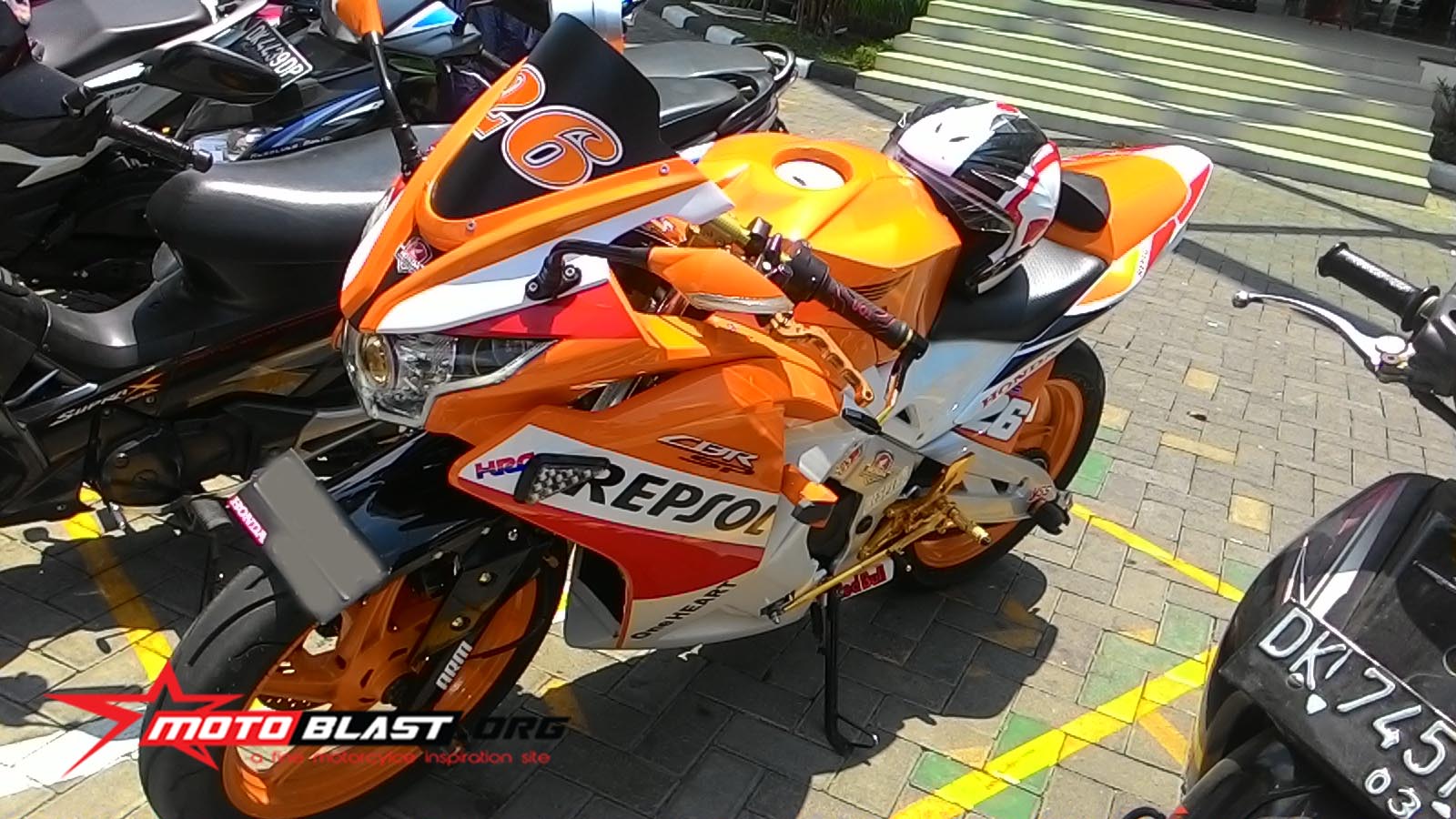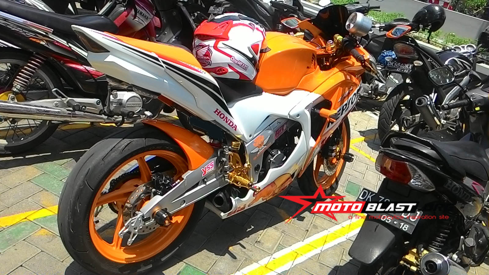 Halo mas dab…. kala jalan jalan..memang bagusnya bawa kamera, jika nanti ketemu hal yang menarik untuk di bahas bisa langsung di jepret..seperti yang saya temui ini adlah modif honda cbr150r thailand ber livery repsol kalo dilihat liat ternyata cukup all out maksimal nih modifnya..
