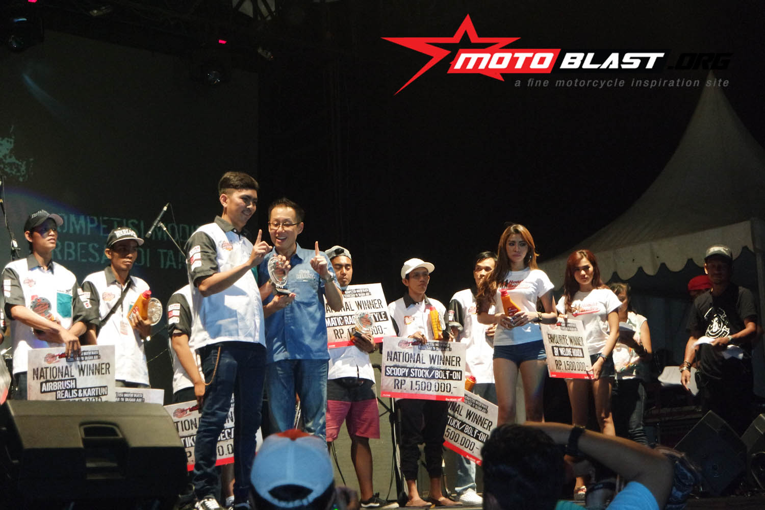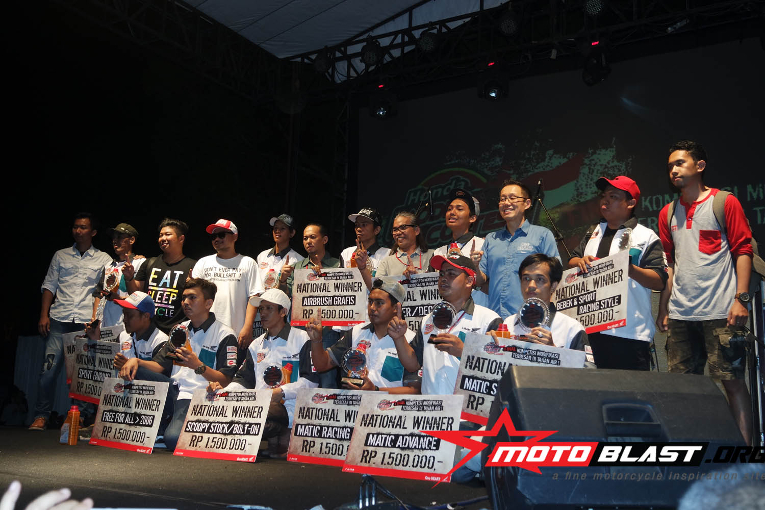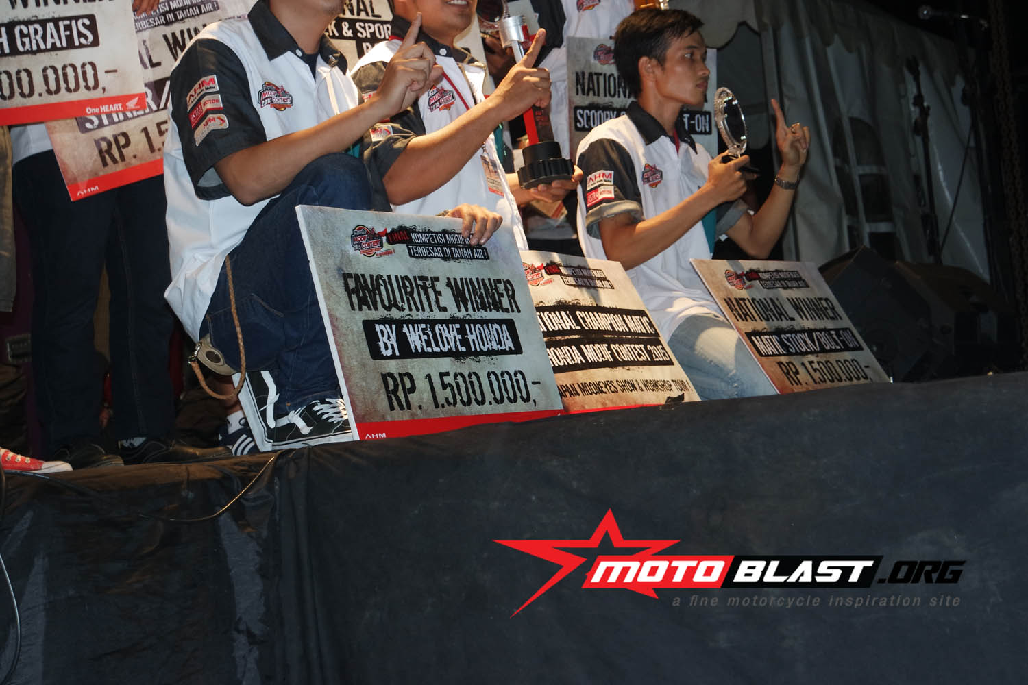 dan motoblast udah mengabadikan muka muka siapa saja yang berhasil menang di ajang modif terbesar di indonesia yang di adakan AHM ini.. monggo..siapatau dari pembaca motoblast inget muka muka pemenangnya, siapa tahu ada sodara, temen gitu..kan bangga ya..hehe