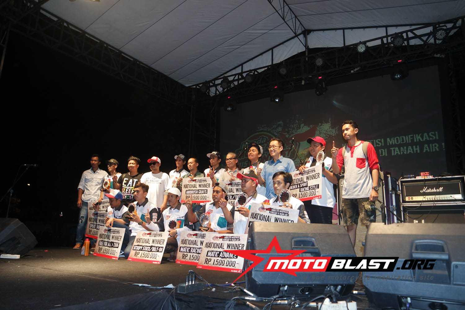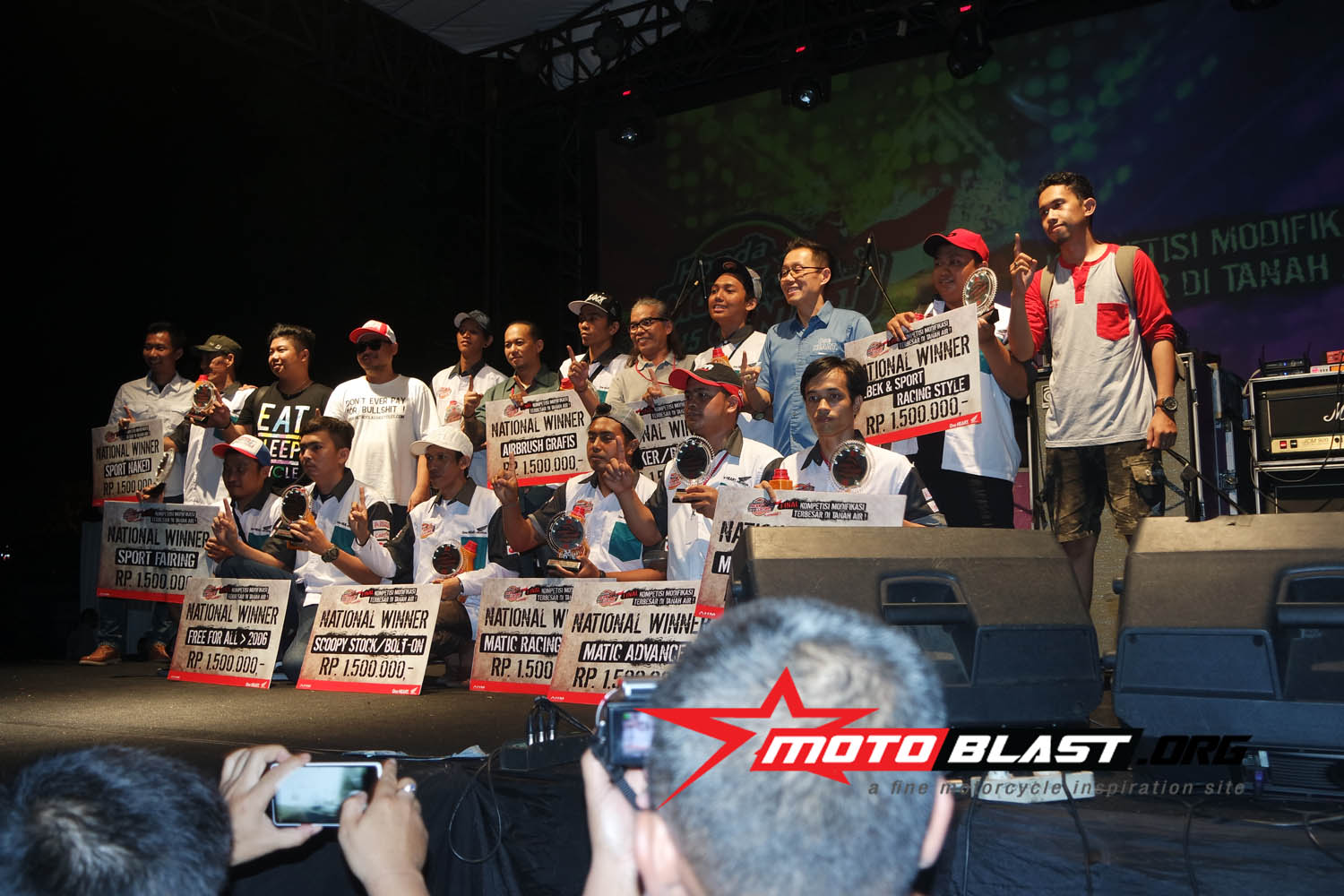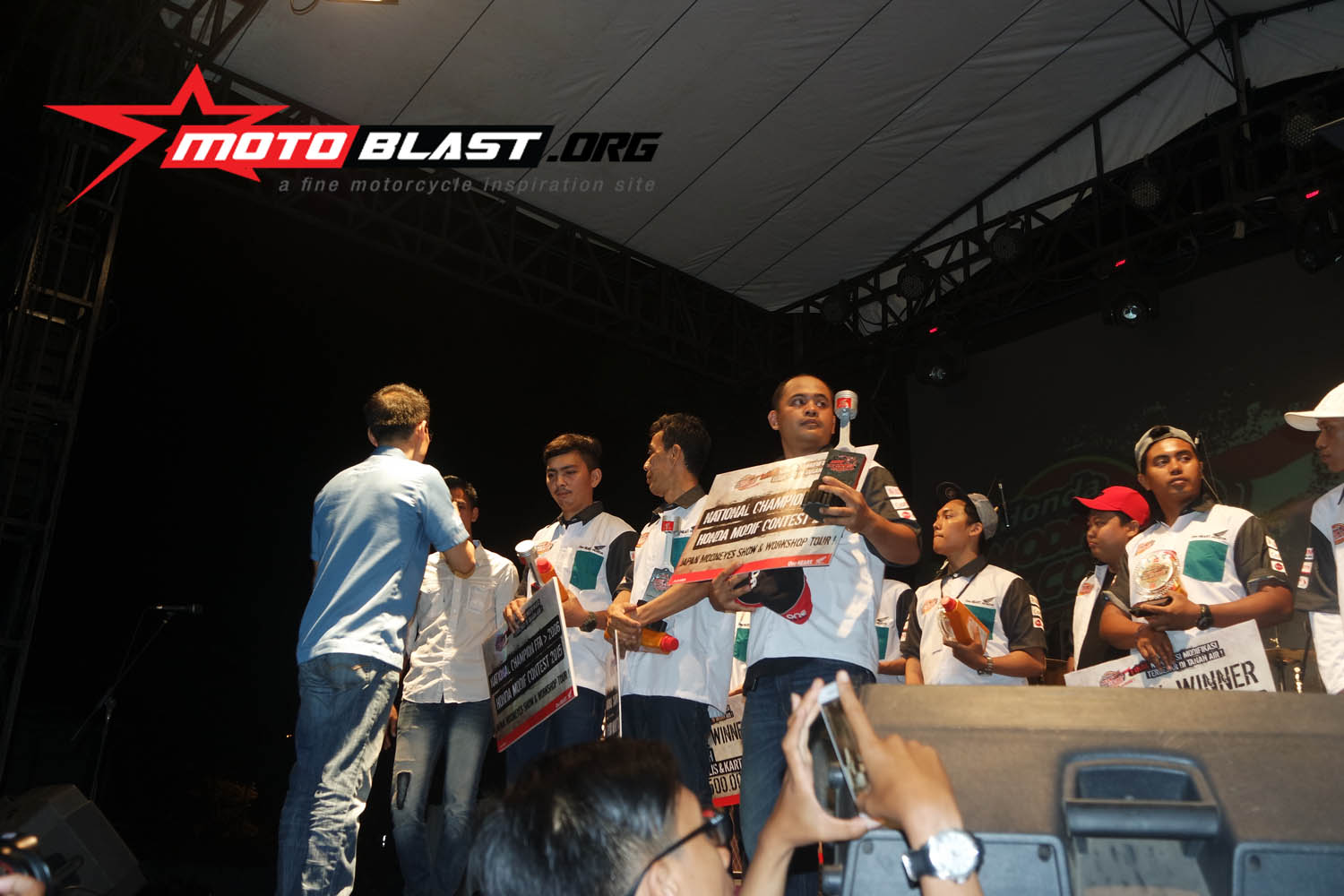 dan motoblast udah mengabadikan muka muka siapa saja yang berhasil menang di ajang modif terbesar di indonesia yang di adakan AHM ini.. monggo..siapatau dari pembaca motoblast inget muka muka pemenangnya, siapa tahu ada sodara, temen gitu..kan bangga ya..hehe