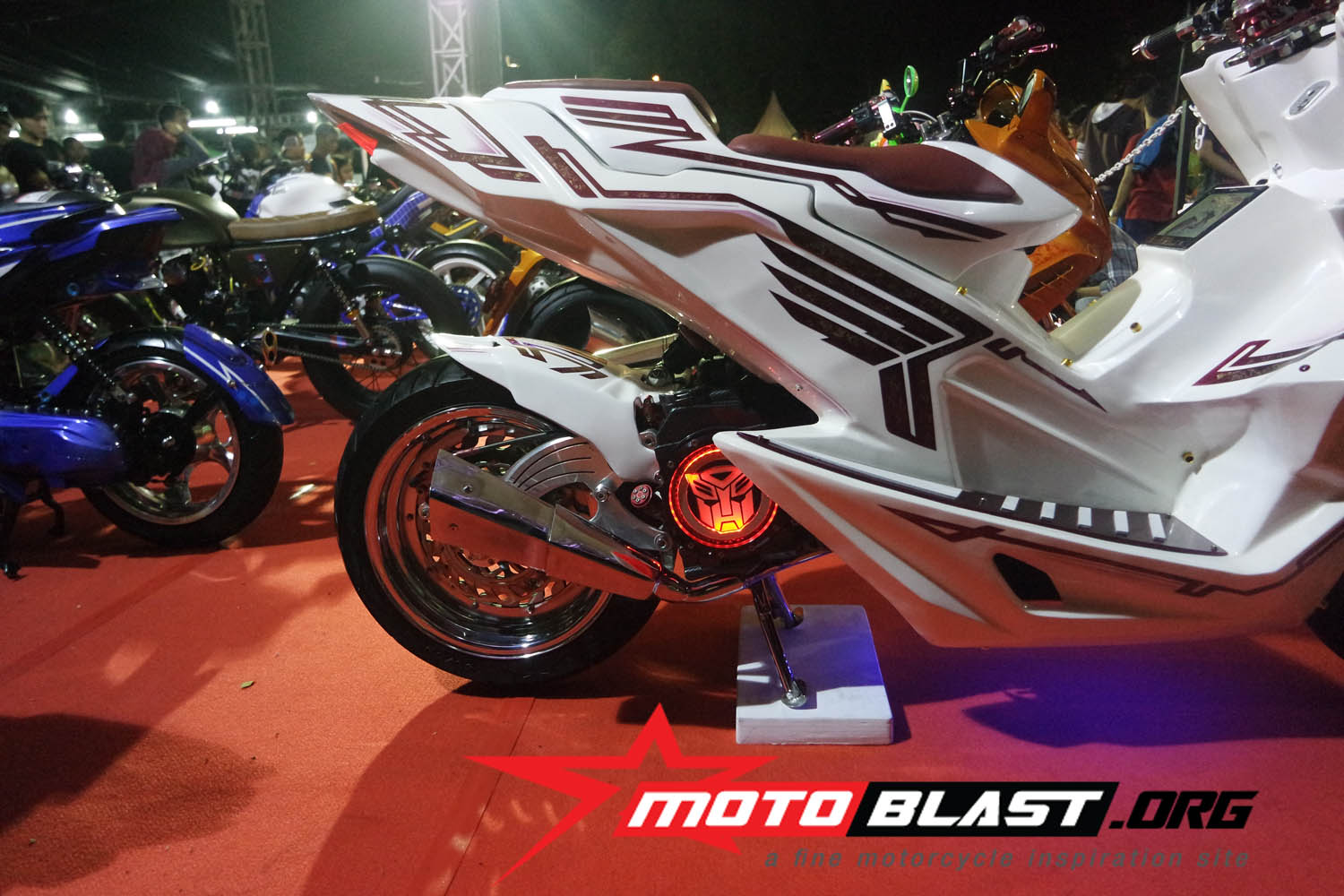 dari 80 modifikator yang ikut dalam babak final kemaren di pilih 3 juara nasional dari kategory honda matic nasional champion, honda club & sport nasional champion dan honda free for all nasional champion, dan hadiahnya adalah sangat istimewa karena di berikan kesempatan untuk menempa diirinya, menimba ilmu di ajang 24thAnnual Mooneyes Yokohama Hot Rod Custom Show 2015 di Jepang yang akan di gelar pada desember 2015. apa sih hebatnya? naah ini nih…bahwa menimba ilmu pada ahlinya di bidang modif, pastinya akan memberikan masukan yang sangat berharga pada diri sendiri demi kualitas modif para peserta yang menang itu tadi..kalo saya sih pribadi bakal beruntung banget…