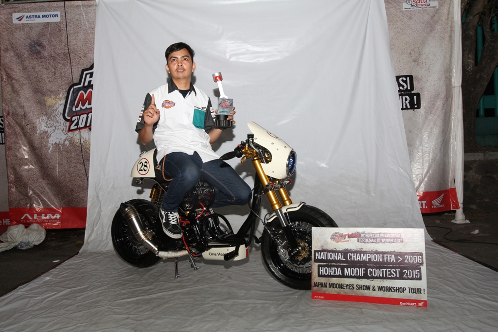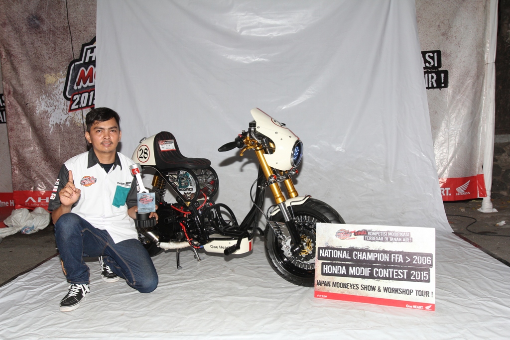 Halo mas dab di artikel sebelumnya saya udah bahas para pemenang honda modif contest 2015 di jogja, dan sekarang saya akan membeberkan siapa siapa saja yang menang, mulai dari nama dan kategory lomba, bahkan para pemenang ini udah siap dengan motornya..naah pastinya penasaran kan modif mana aja sih yang ter kreatif dan mendapatkan nilai tertinggi di mata juri kemaren yang mengalahkan 80 modifikator dari 1200 peserta modif se indonesia..weleh..sangar tenan rek