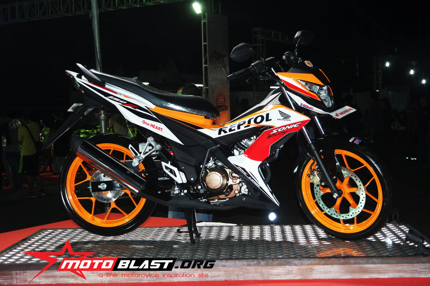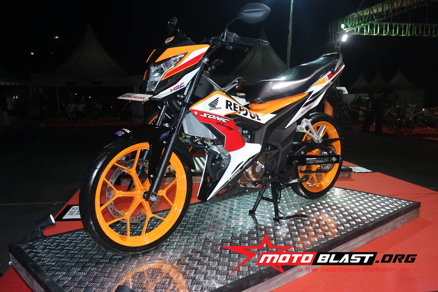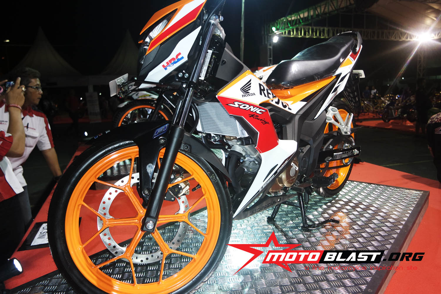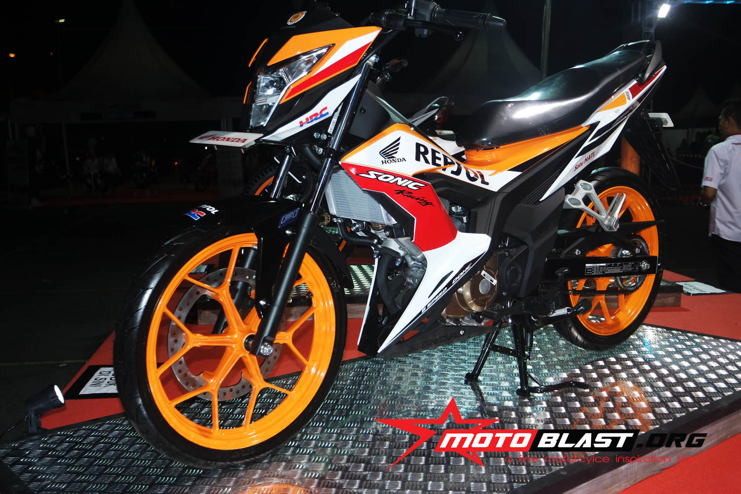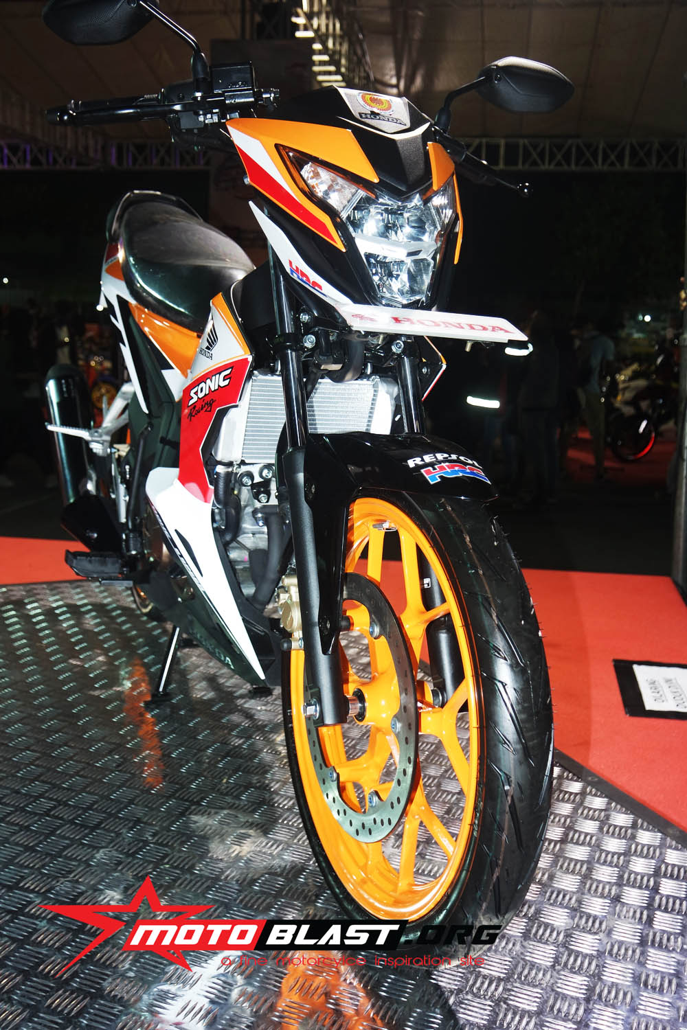 wes lengkap toh..dan saat itu motoblast jepret langsung dan melihat langsung sosok sonic 150 repsol edition..jiaan ngiler tenan.orange nya gagah rek..kinyiss kinyiss…