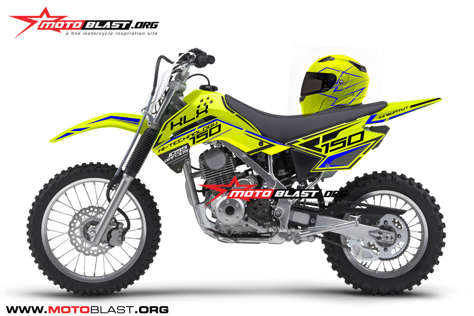 Halo mas dab…sejenak lupakan hiruk pikuk dan rutinitas harian yang buat penat..saatnya off road garuk tanah deh..untuk itu kali ini motoblast akan buatin modif striping untuk kawasaki KLX150 dengan tema Yellow Hitech.plus motoblast buatin grafis helm nya..monggo di intip