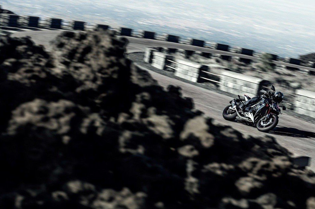 warna hitam yang kemungkinan itu warna hitam doff, dan warna agak silver gelap, di padukan sangat kontras dengan warna merah elegan, merah matang dan suspensi depan pun tidak luput dari pewarnaan merah , kemudian di padukan dengan knalpot akrapovic yang membuat semakin sempurna visual sang motor monster ini.