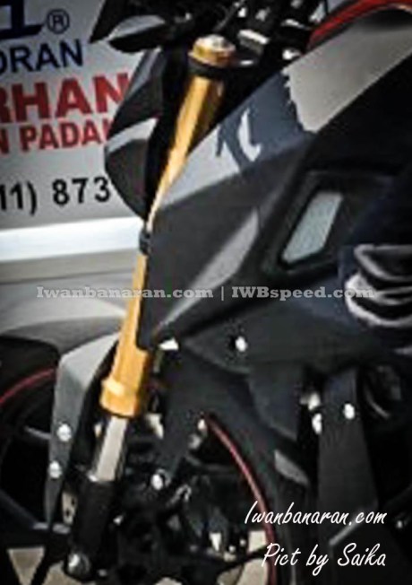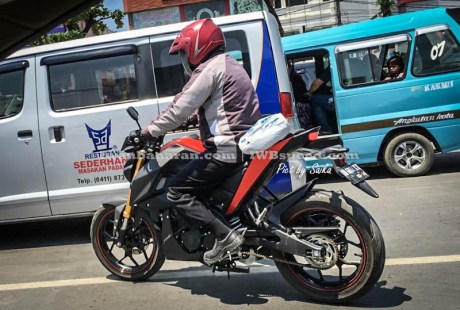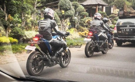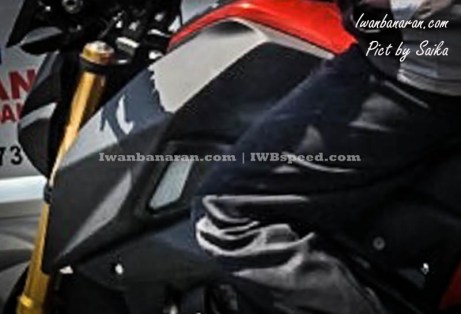shroud memang sangat mirip dengan KTM 1000, kemudian velg ala R25, buntut R15 di kalibri, headlamp yang sipit LED, lampu sein milik NVA, ban di sinyalir seukuran dengan NVA, shock pake USD, knalpot sama dengan R15, mesin disinyalir masih SOHC.