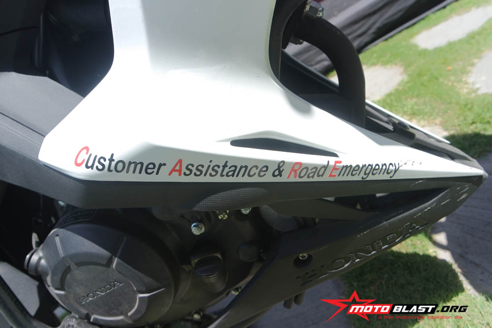 laburan warna merah di sertai warna p utih, plus tulisan honda care, dan nomer telepon terpampang, woww… kok seger ya masbro..apalagi merahnya itu loh, merah merah energik, putihnya pun seperti nonjok banget