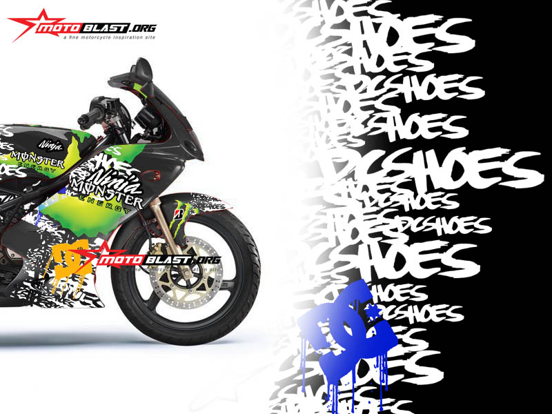 Halo mas dab..selamat malam, monggo bagi yang belum sholat maghrib, silahkan maghriban dulu, baru deh buka blog motoblast, hehe, kali ini motoblast akan buatkan modifikasi striping untuk ninja 150r lawas super kips warna hitam dengan tema monster DC , penasaran? monggo di intip