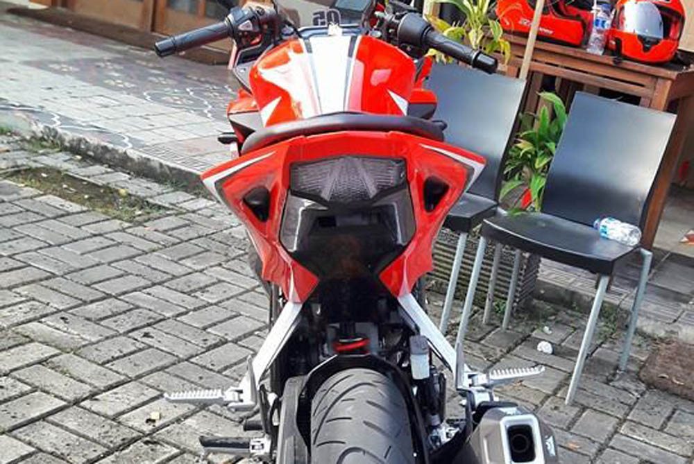 yup.. bagi yang doyan modifikasi pasti sang rider cbr nya ingin lepas spakbor belakang,sehingga terlihat lebih sporty, tapi apa daya, cbr series sebelumnya bentuk buntutnya masih ada besi tambahan yang gunanya untuk konektor dengan spakbor, sehingga walaupun di lepas spakbornya, masih ada benjolan atau besi yang menempel, bahkan body belakang pun di buat seperti itu, permanen, ini memang sangat mengganggu, makanya tak jarang sampe rela memotong besinnya, demi mendapatkan tampilan lebih racy,
