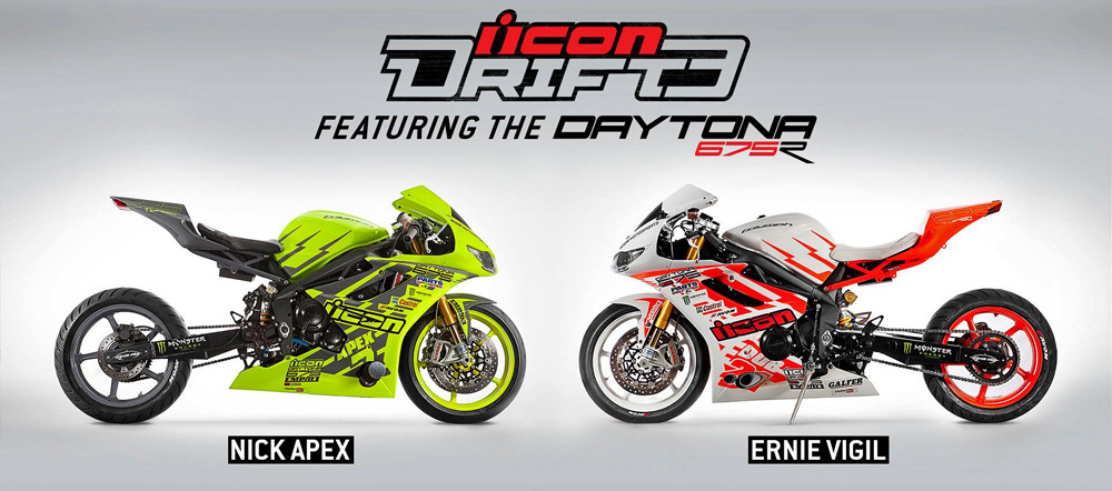 kedua motor tema diatas adalah sebenarnya merupakan livery dari motor triump daytona 675R yang di pakai untuk ngedrift yang di sandingkan dengan mobil, video nya sangat asyik untuk di liat, monggo saja liat di youtube.
