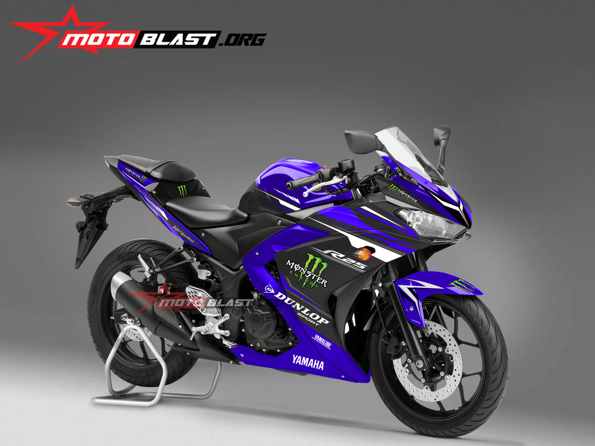 Halo mas dab..selamat malam… kali ini motoblast akan membuatkan modifikasi striping untuk yamaha R25 warna biru dengan tema Monster terbaru yang tampak lebih sporty dan keren abis, monggo di intip