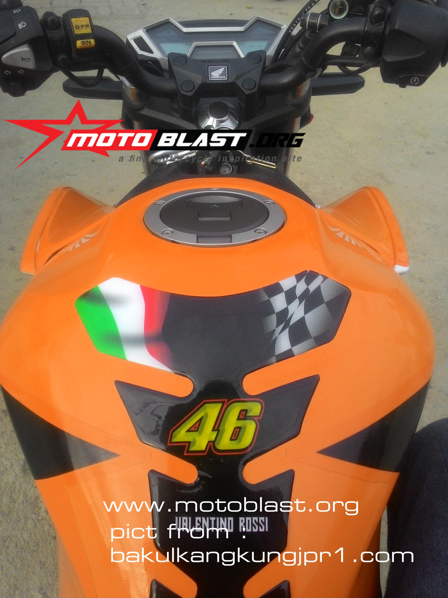 sayangnya menurut motoblast yang livery repsol motogp kurang maksimal, terasa kopong di bagian sayap dan tangki… tidak seperti buatan motoblast berikut ini yang walaupun repsol versi lawas tapi lebih pas dan klop di body new cb150r