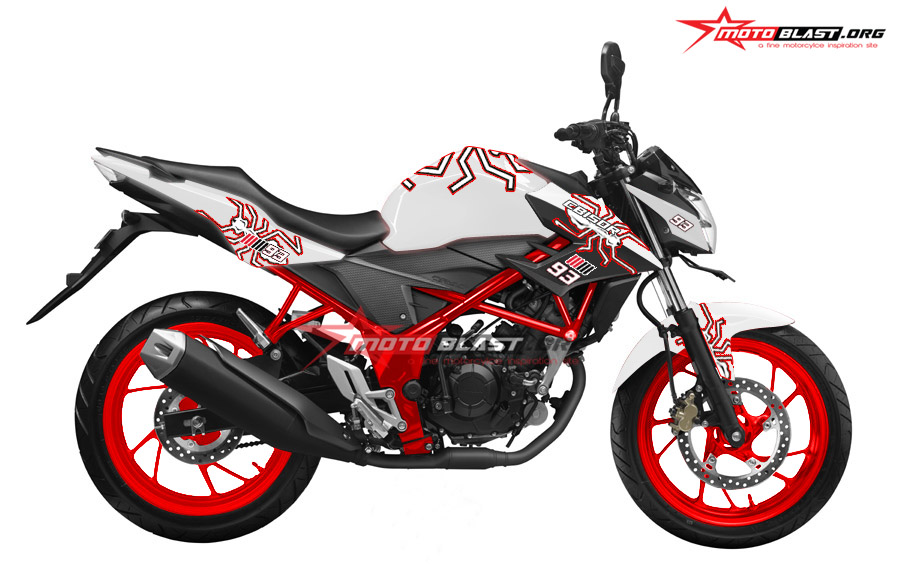 Halo mas dab..selamat siang, kali ini motoblast akan membuatkan modifikasi striping untuk honda all new cb150r warna putih dengan tema marc marques MM93. monggo di intip