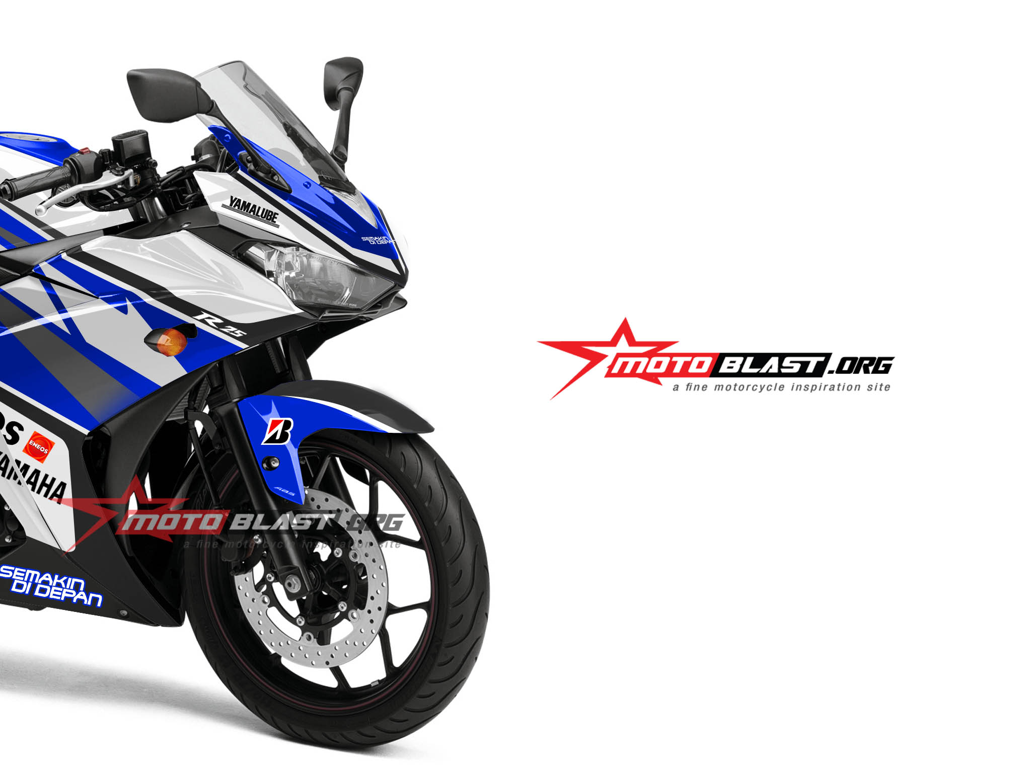 Halo mas dab..selamat pagi..kali ini motoblast akan membuatkan modifikasi striping untuk yamaha R25 warna biru putih dengan tema livery motogp jaman lawas, kurang tahu ini tahun berapa, tapi langsung saja di intip