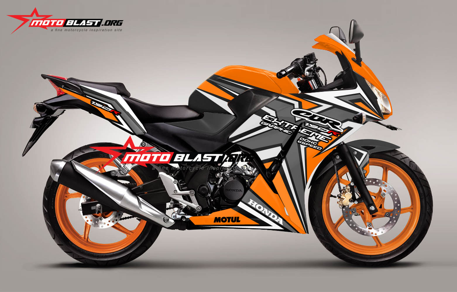 Masbro rider cbr150r lokal k45 old repsol? gimana masih senang dengan livery nya apa sudah mulai bosan? ingin ganti livery? monggo pake decal stiker fullbody saja, tema extreme buatan motoblast berikut ini, dijamin maknyus.. wes ra perlu ganti warna di stnk, soalnya sudah sesuai, orange dan ada putihnya, tampilan lebih fresh dan lain daripada yang lain, apalagi bisa melindungi stiker bawaan pabrik dan body motornya dari goresan, dan hujan serta sinar matahari yang buat pudar lama lama