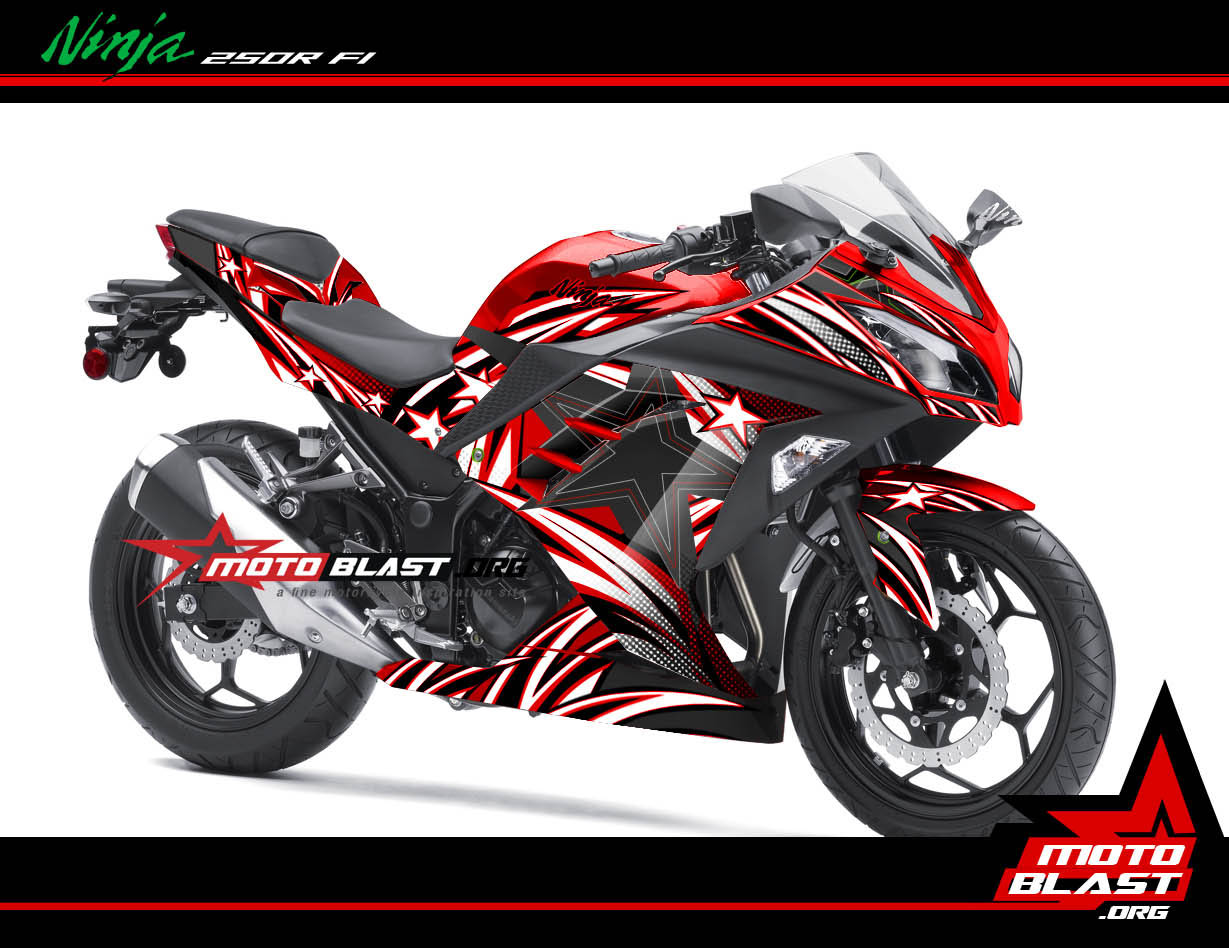 Motoblast.org – Modifikasi striping kawasaki Ninja 250r Fi RED Black star ini sangat spesial sekali, karena menganut sistem fullbody striping untuk motor anda dan terlihat sangat komplek sekali grafisnya, dan juga sangat tajam, sangat pas untuk ninja 250r fi anda