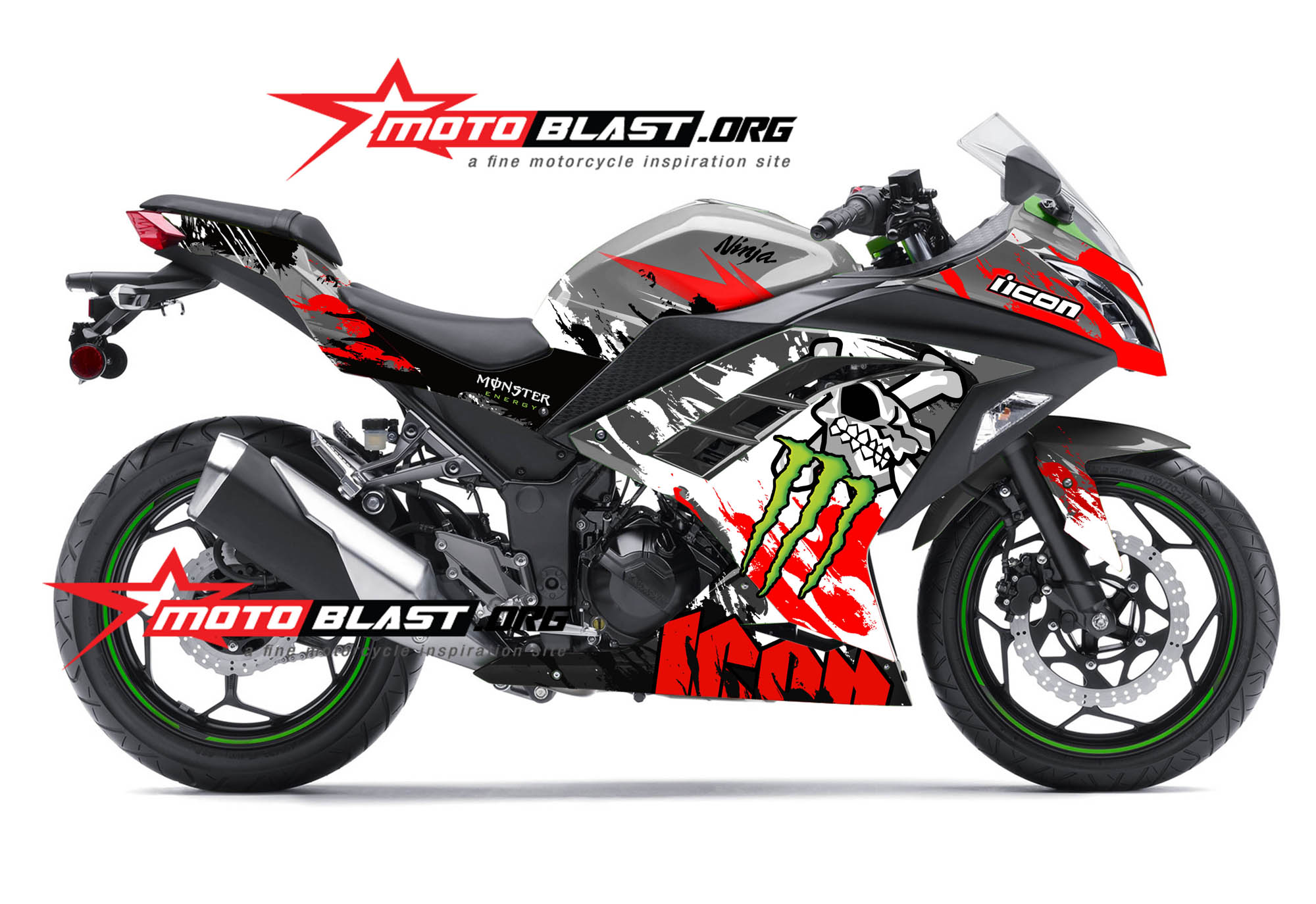inilah Graphic Kit Inspirasi Kawasaki Ninja 250R Fi White Grey SKull Monster