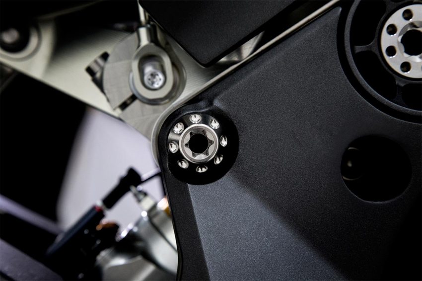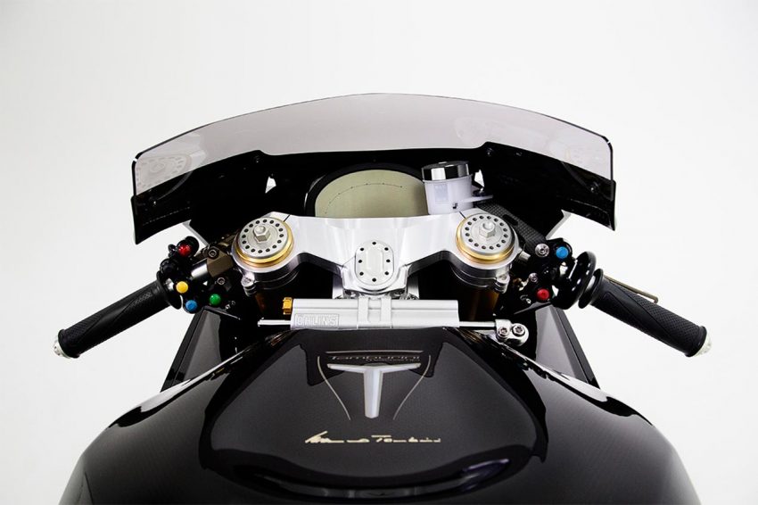 Magnesium di gunakan di bagian kepala, swing arm dan roda, komponen terbaik dan berkualitas racing juga di masukkan, seperti suspensi Ohlins untuk ban depan dan belakang, pengereman di percayakan pada brembo, menggunakan komponen racing hanya dengan peralatan staubli, dan elektronik T12 Massimo adalah MOTEC.