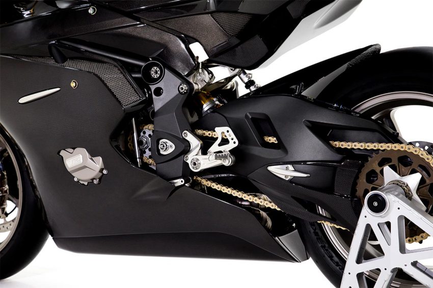 Hasilnya adalah sepeda motor dengan power 230hp dengan berat diatas 150kg, dimensi fisik juga mirip dengan sepeda GP, serat karbon juga di gunakan di seluruh mesin, dan fairing slab yang ramping namun dengan di beri kisi kisi untuk udara yang masuk, kemudian untuk tangki bahan bakar juga di buat lekukan dinamis, dengan mengusung mesin BMW S1000RR 999cc, Untuk rangka teralis terbuat dari baja yang minimalis, pro arm aluminium.