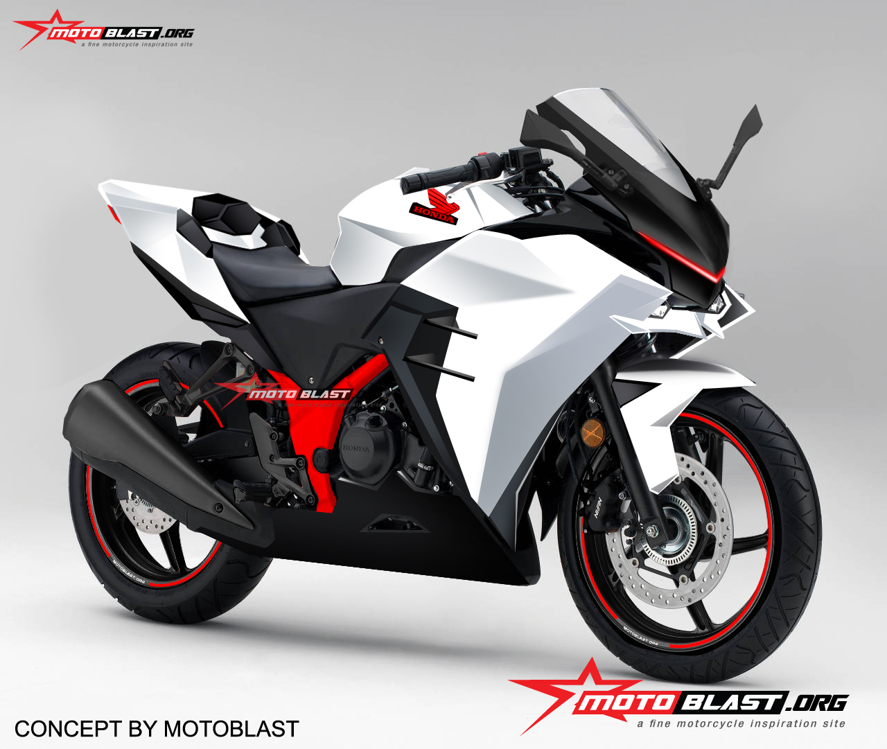 Setelah itu untuk sayap sendiri tidak banyak berubah, hanya saja saya kasih sirip sirip agar lebih kekar dan lebih lebar, untuk bagian buntut, motoblast mencoba membuat persis seperti H2R, namun nanti prakteknya pasti di sesuaikan agak mengecil dan juga kita tahu bahwa ada besi yang lebih di buntut cbr250r thailand ini, maka untuk mengakali nya harus di potong bagian besi lebih yang mengarah ke spakbor belakang, di potong, sehingga tidak ada lagi body yang tersisa, maka akan terlihat runcing dan konsep ini bisa di pakai.