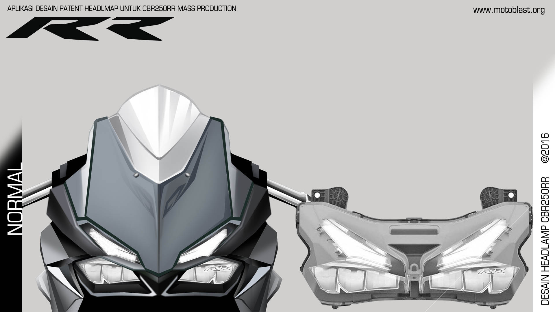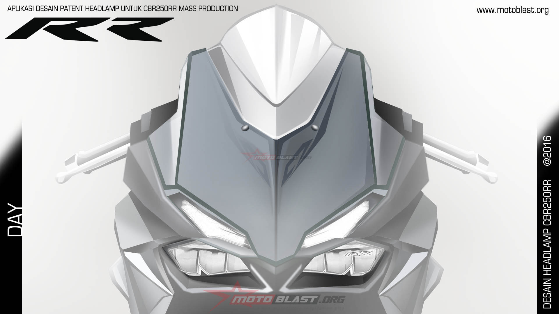 dari renderan saya ini, merupakan renderan yang berdasarkan desain patent dari UK yang banyak di kabarkan bahwa inilah desain patent headlamp light weight supersport dari honda yang disinyalir adalah honda cbr250rr, makanya motoblast buat renderan, ketika ada bocoran ini maka motoblast kembali mengupdate nya agar paling tidak para pembaca setia motoblast bisa membayangkan kira kira seperti apa sih nanti. naaaah penak toh ada juru visualisasi bocoran dari blogger sekarang, hahaha..biar gak di awang awang saja