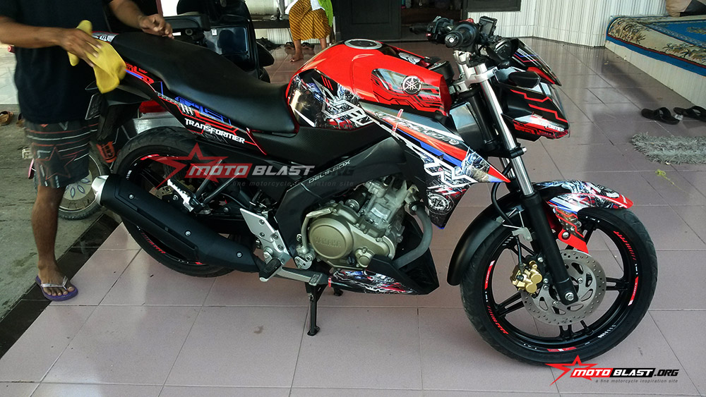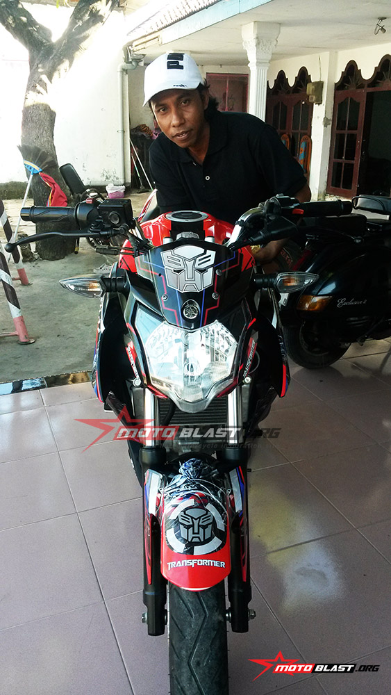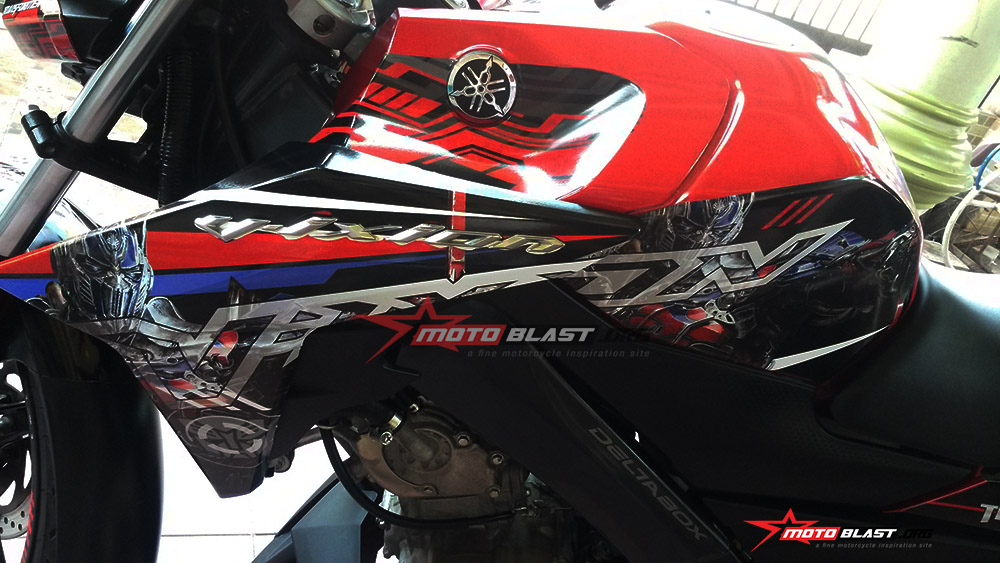 motoblast.org – Halo mas dab..selamat siang, kali ini motoblast akan share motor yamaha new vixion advance milik kakak saya sendiri yang sudah saya berikan decal fullbody dengan tema optimus prime transformer, monggo di intip