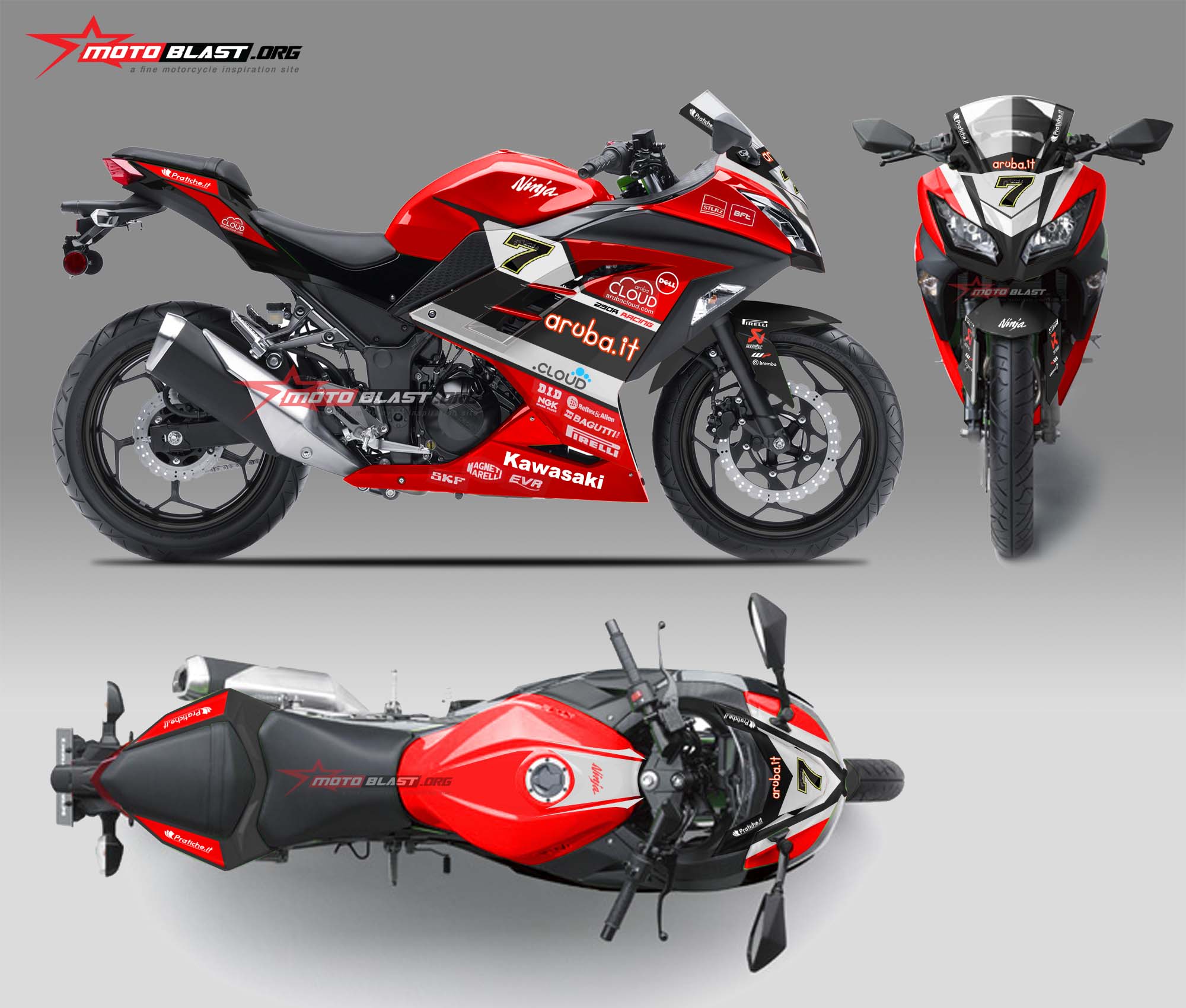 inilah Graphic kit Kawasaki Ninja 250R Fi RED livery Aruba IT WSBK 2016 – 3 View Perspektif