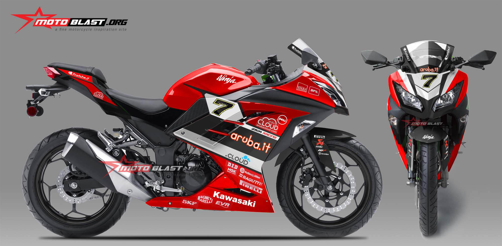 Motoblast.org – Halo mas dab selamat malam, kali ini motoblast akan membuatkan modifikasi striping istimewa untuk kawasaki ninja 250r fi warna merah dengan tema livery Aruba IT WSBK 2016, dengan 3 view atau tampak samping, depan dan atas, monggo di intip