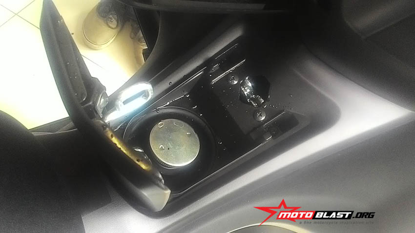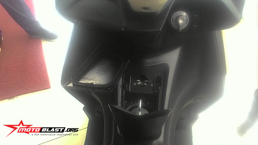 Dashboard Yamaha Aerox memang tidak selebar dari Yamaha NMAX, dan juga hanya ada satu di sebelah kiri, namun keunggulan dashboard yamaha aerox 155 ini ada tutupnya seperti dashboard pcs kurang lebih dan hanya ada di sebelah kiri, sedangkan di sebelah kanan tempat kunci kontak digital, saya menyebut digital karena keyless dan seperti starter mobil aja nih…hehe.. dan di sebelah kiri tempat dashboard yang ada tutupnya ini adalah tempat untuk charger HP, bisa juga tempat simpan barang barang kecil kecilan.