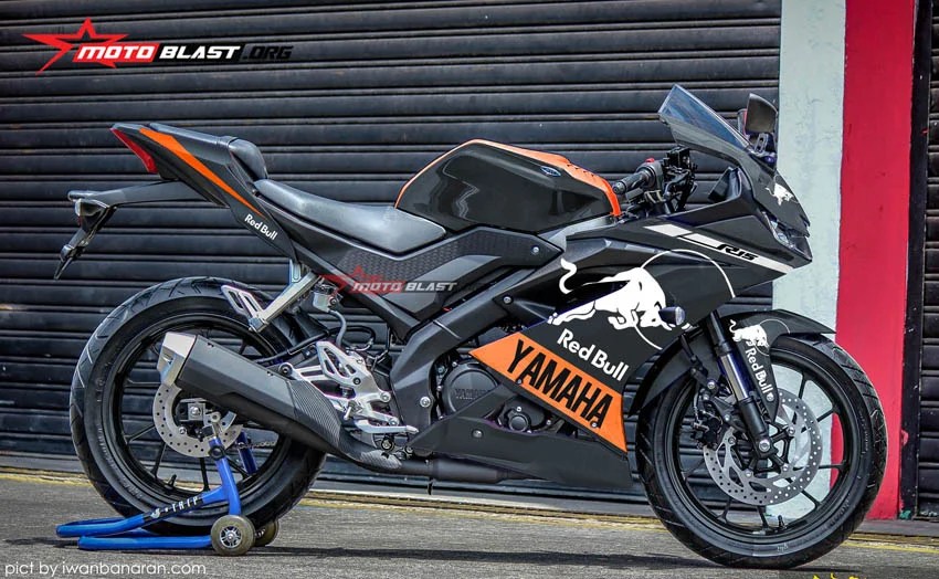 Modifikasi All New Yamaha R15 Black Redbull – Dengan basic warna motor hitam dengan goresan grafis Redbull seperti KTM Redbull motogp saat melakukan pre test di tahun 2016 tahun lalu ya.. dan ini sekarang saya aplikasikan di All New Yamaha R15