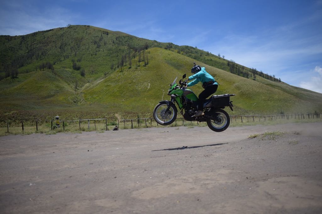 Sensasi pun langsung disambut dengan hamparan pasir yang dilalui para rider hingga rehat di Padang Savana yang dikenal dengan nama Bukit Telletubies. “Nyaman sekali performanya. Di berbagai kondisi jalan, hingga lautan pasir menjadi sensasi tersendiri dengan tunggangan 250cc ini,” kata Made Purnadha, rider asal Buleleng.