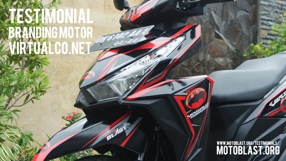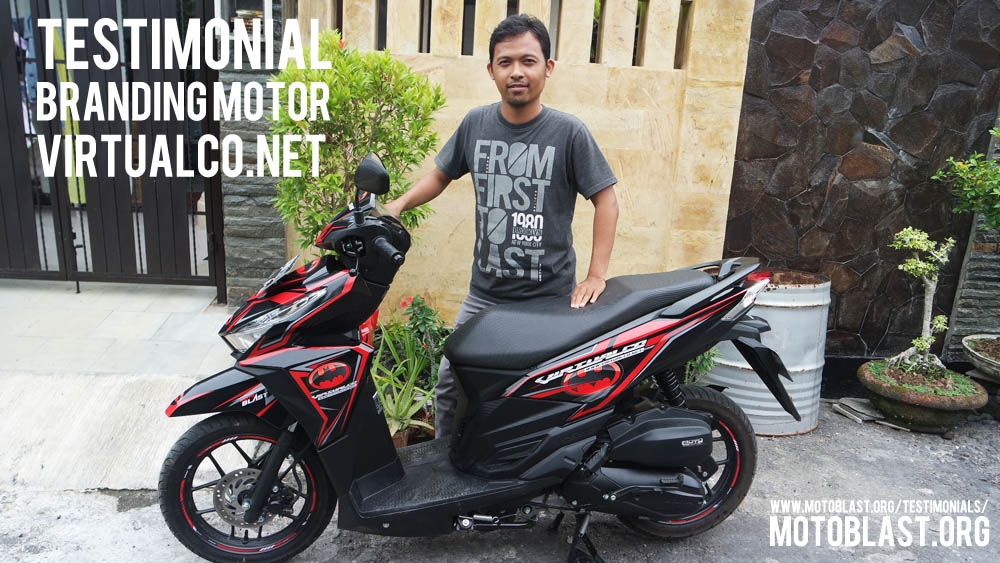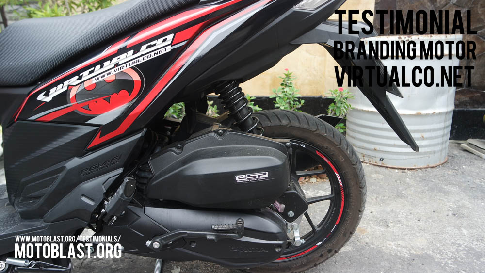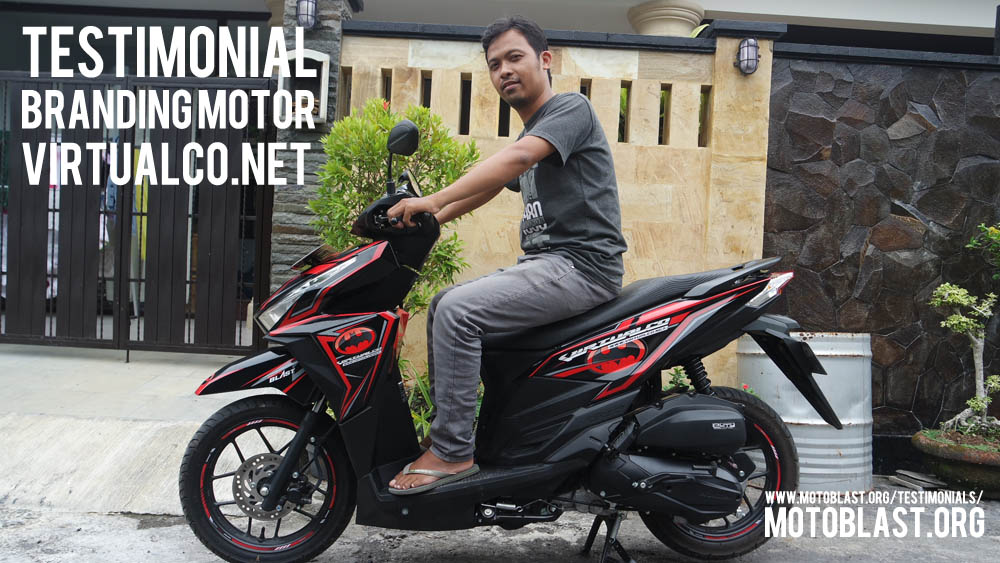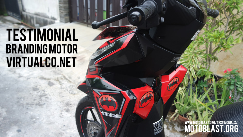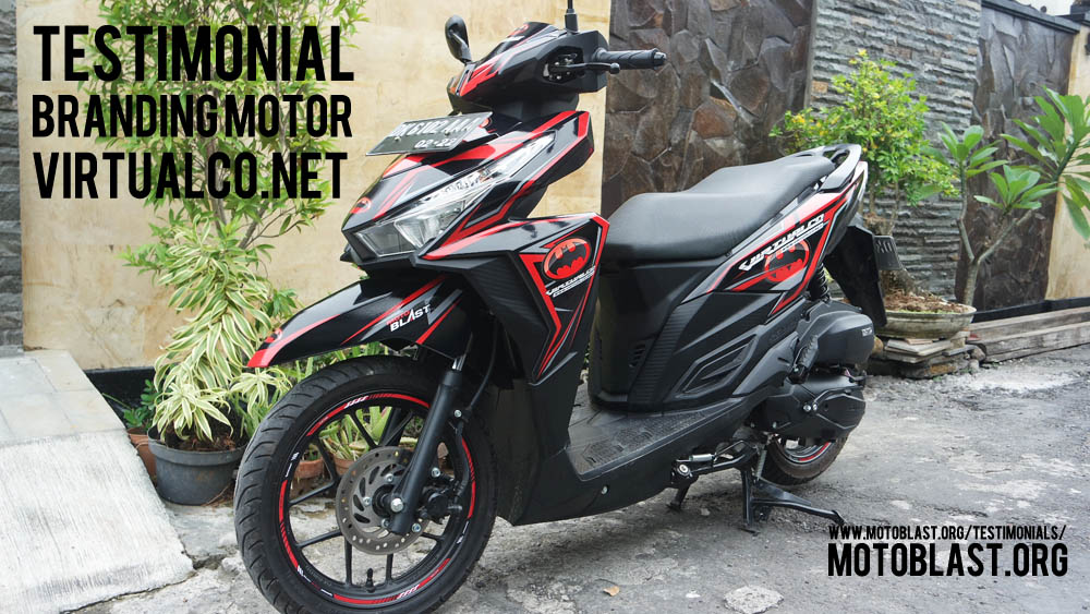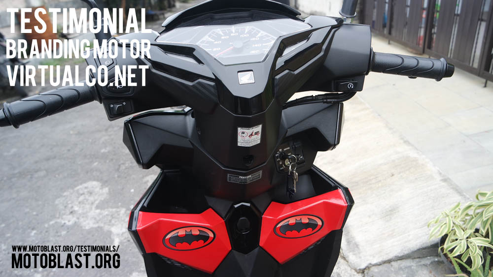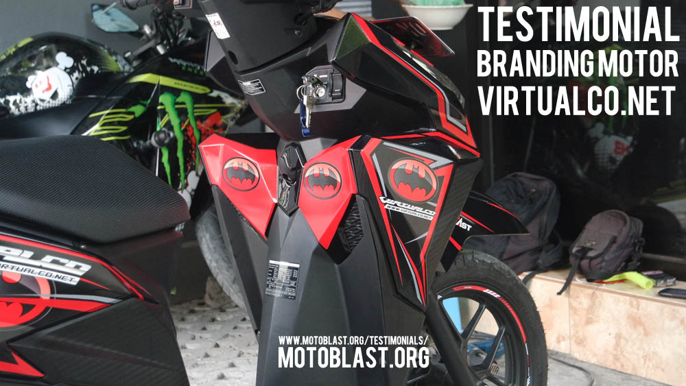 Dan ketika kemarin setelah masbro satu ini yang baru memiliki motor vario 125 Esp, karena tahu motoblast memiliki usaha kecil kecilan di bidang decal stiker akhirnya mempercayakan branding motor matic nya di motoblast dengan tema batman warna merah namun harus ada tulisan dari nama usahanya yaitu virtualco, yoi.. wesss langsung oret oret dan begitu selesai langsung pasang di lapak motoblast