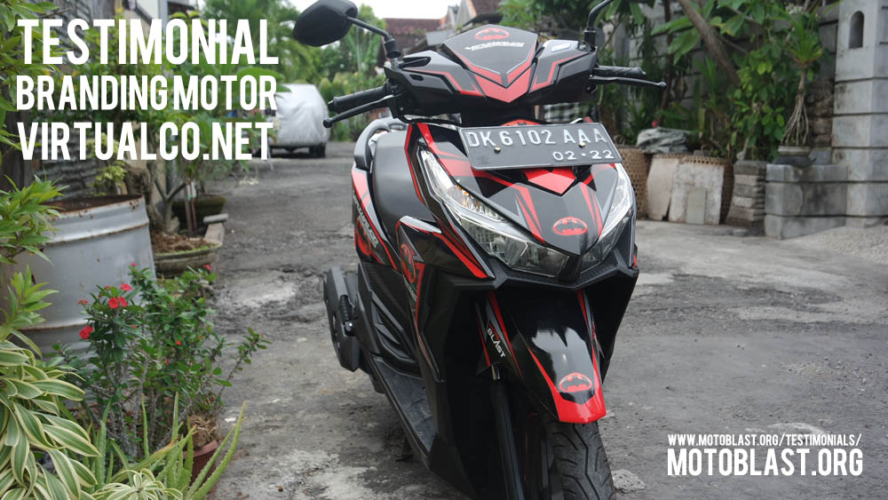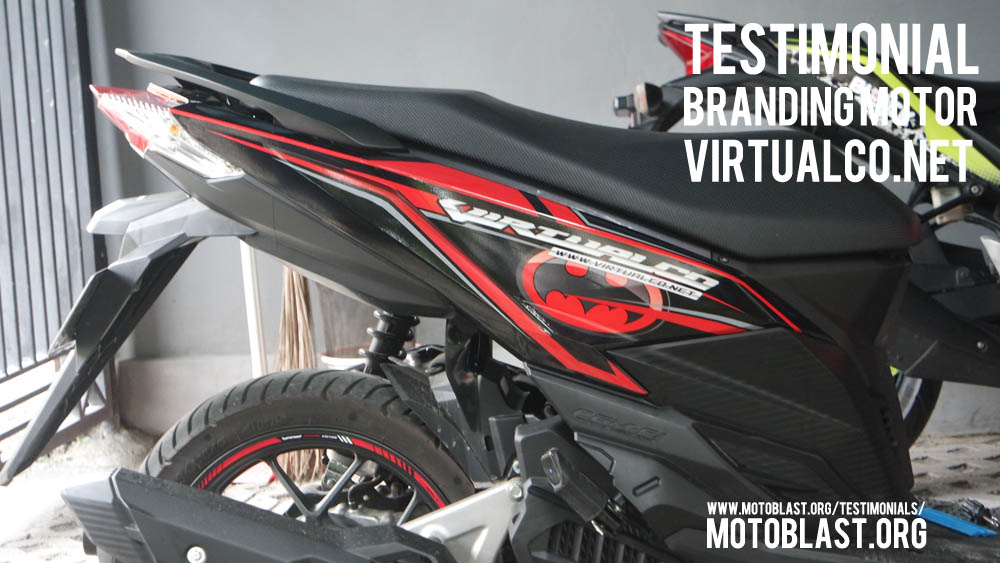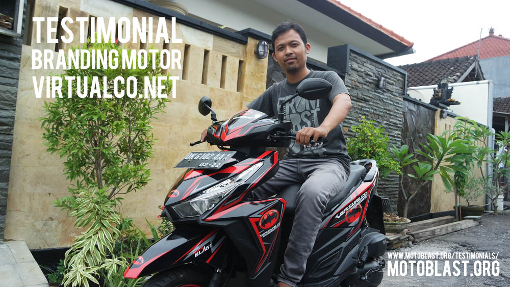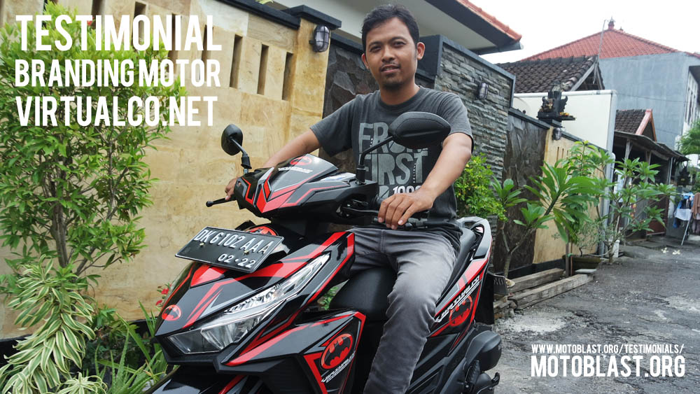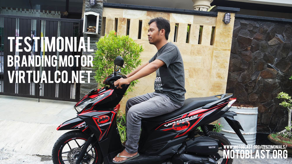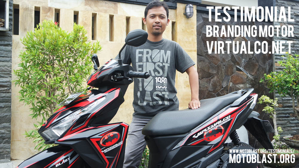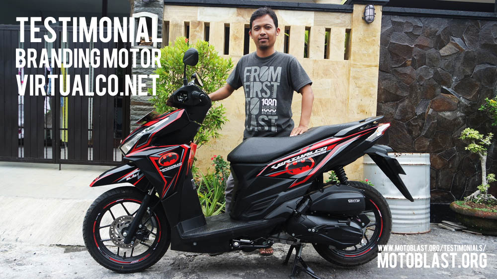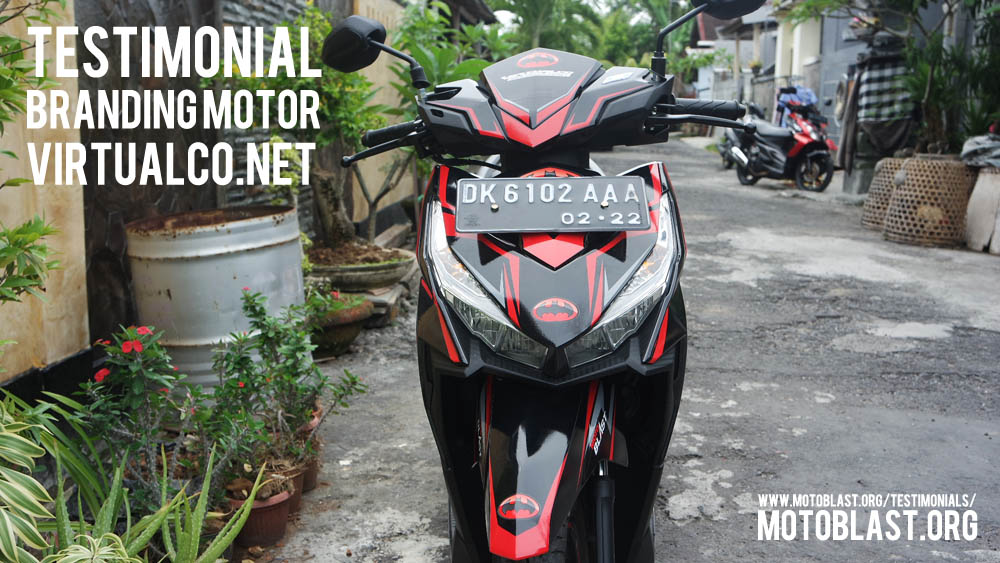 Dan ketika kemarin setelah masbro satu ini yang baru memiliki motor vario 125 Esp, karena tahu motoblast memiliki usaha kecil kecilan di bidang decal stiker akhirnya mempercayakan branding motor matic nya di motoblast dengan tema batman warna merah namun harus ada tulisan dari nama usahanya yaitu virtualco, yoi.. wesss langsung oret oret dan begitu selesai langsung pasang di lapak motoblast