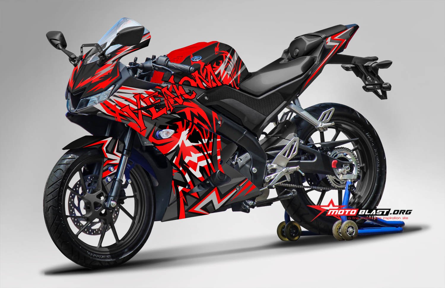 Halo mas dab.. kali ini motoblast akan membuatkan modifikasi striping untuk all new yamaha r15 v3 warna hitam dengan tema red venom.. monggo di intip