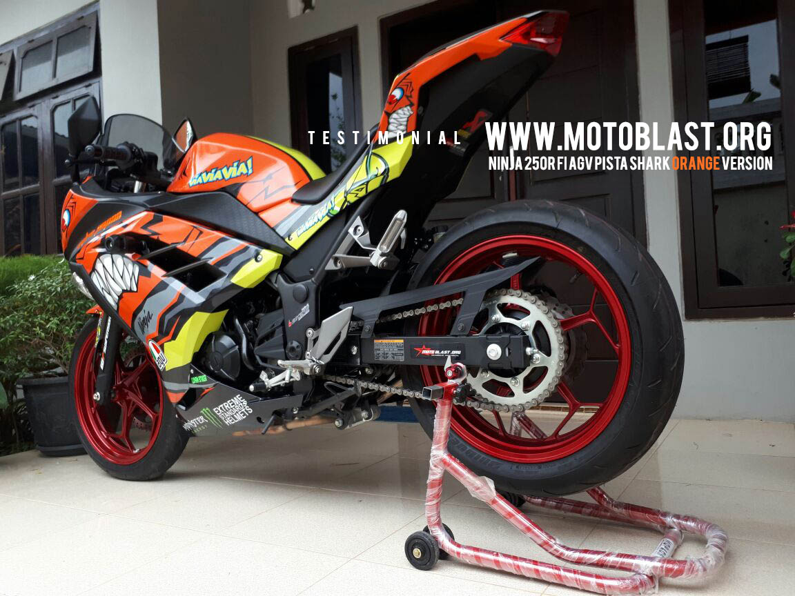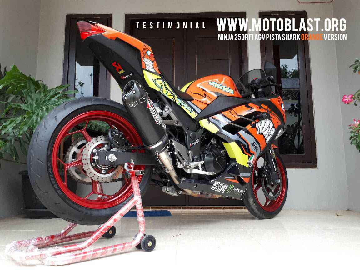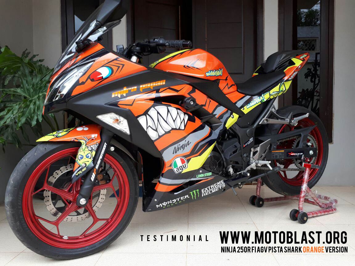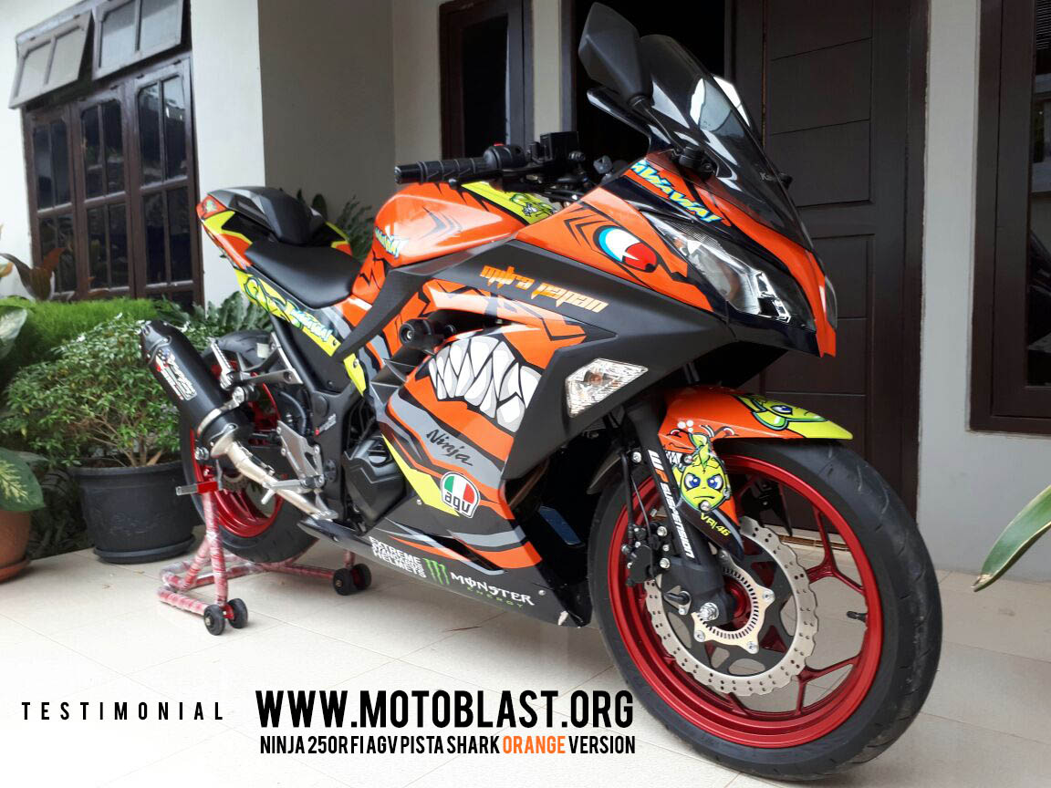 Halo mas dab.. pagi pagi sudah di wa oleh konsumen motoblast asal kediri jawa timur yang sebelumnya memesan stiker decal untuk motornya ninja 250r fi tema agv pista shark orange version dan telah di kirim hasil nya.. wes mrongoss tenan iki
