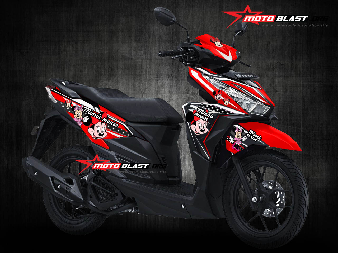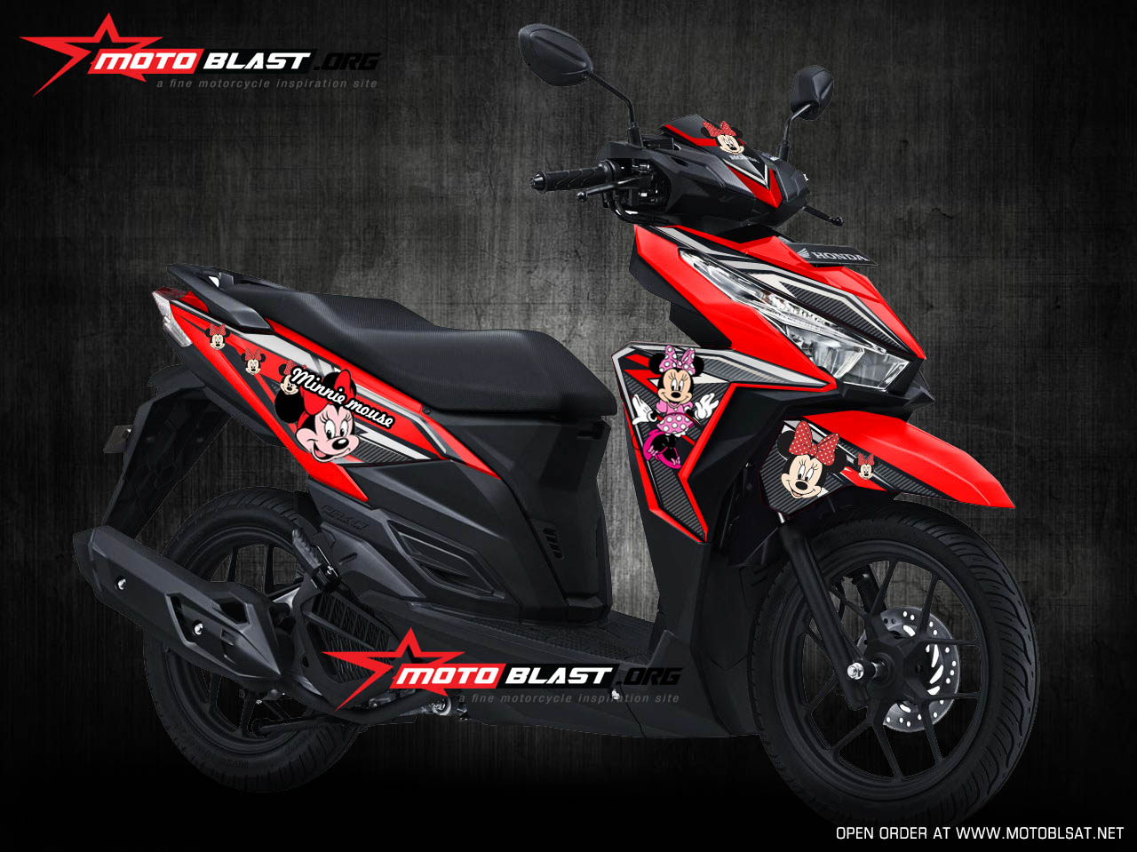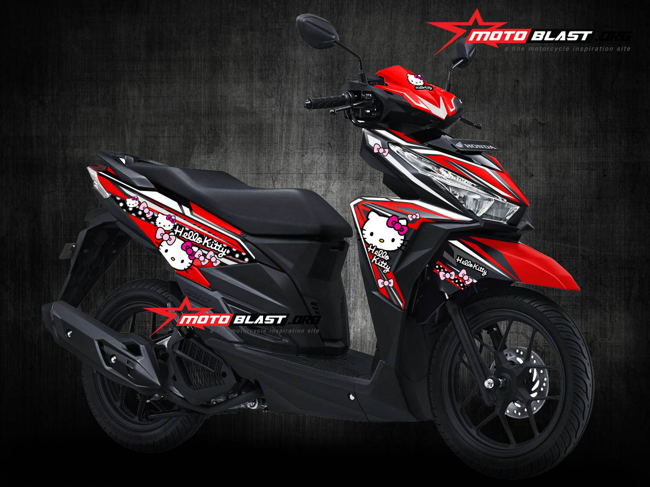 Halo mas dab.. kali ini motoblast akan membuatkan modifikasi striping untuk honda vario 125/150Esp warna merah dengan tema Hello Kitty dan juga Minnie Mouse sekaligus.. monggo di intip