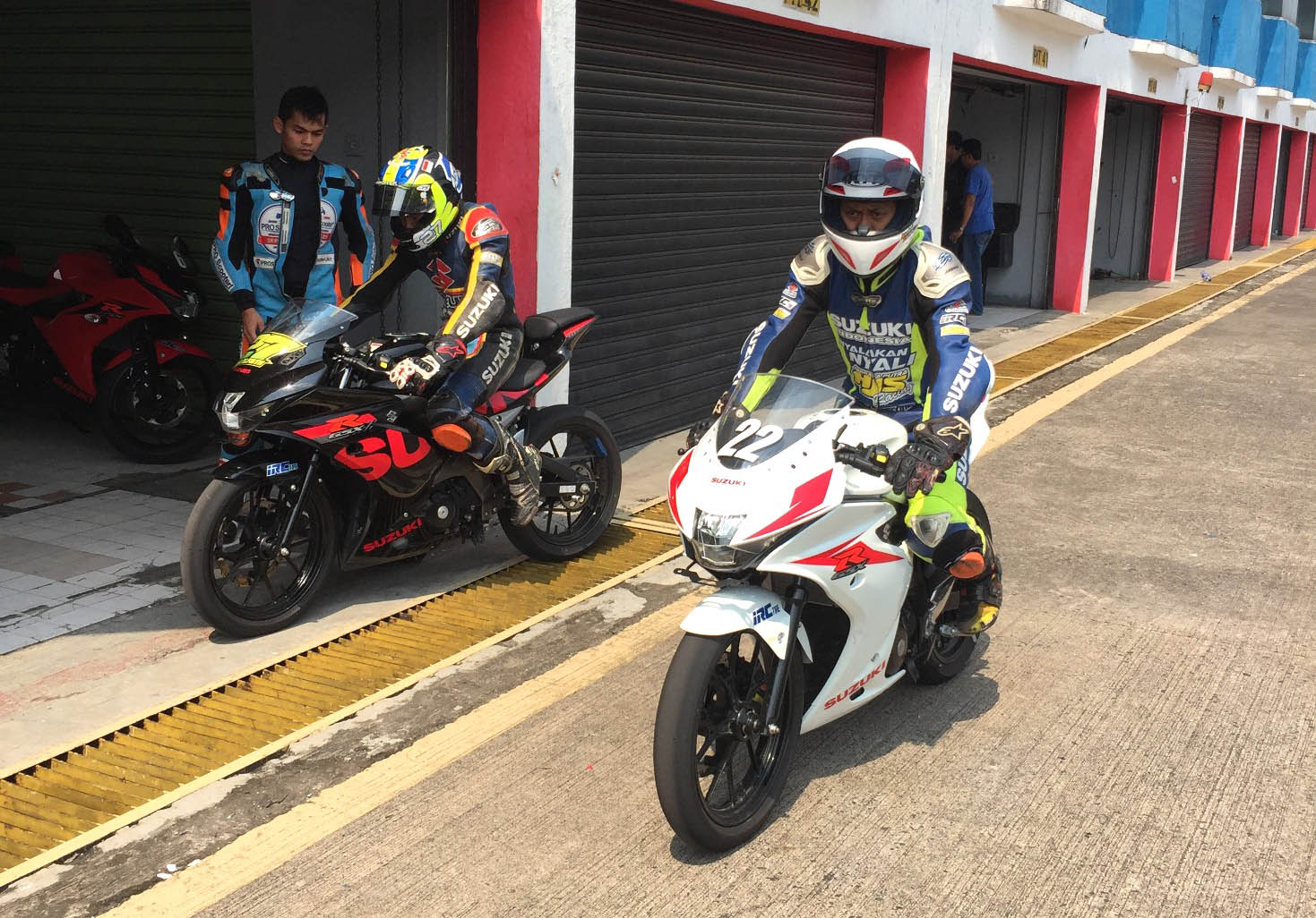 Setelah lama tidak ‘mengaspal’ di sirkuit Sentul, Team Suzuki Indonesia yang diperkuat oleh Nur Al Fath (#27), Ahmad Saugi (#11) dan Chepy Armansyah (#76) kembali melakukan latihan pemanasan menggunakan Suzuki GSX-R150 agar bisa membaca kondisi terkini lintasan dan mempersiapkan langkah preventif guna mencapai hasil terbaik saat bertanding 12 – 13 Agustus nanti.