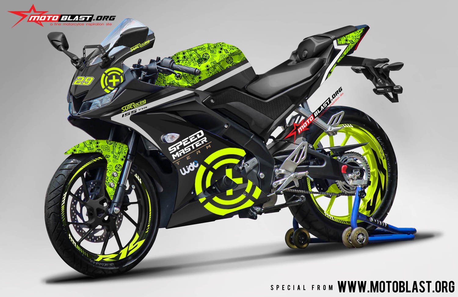 Halo mas dab.. kali ini motoblast akan membuatkan modifikasi striping untuk motor All new Yamaha R15 warna hitam dengan tema livery andrea iannone moto2, monggo di intip