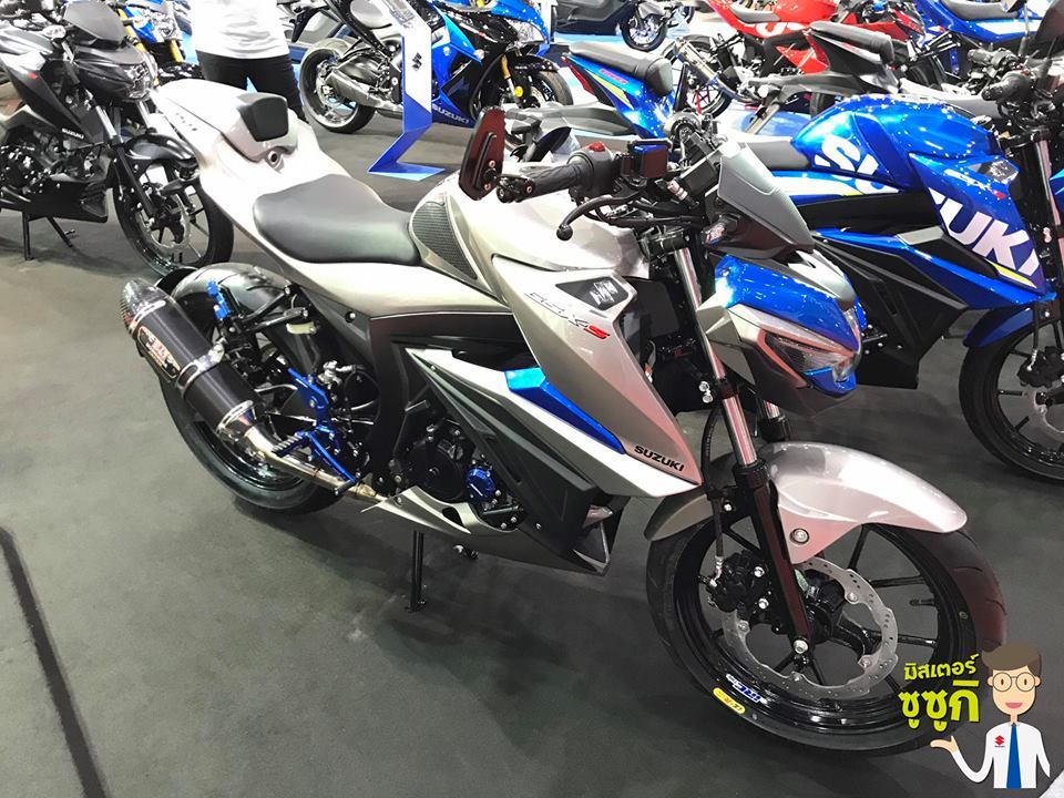 Suzuki Thailand merilis naked sport 150cc GSX-S150 dengan 3 varian warna yaitu silver, blue dan hitam merah namun ada yang berbeda masbro, ternyata ada seperti asesoris tambahan half fairing di kiri kanan yang membuat tampilan suzuki GSX-S150 menjadi lebih gagah dan tampan sekali